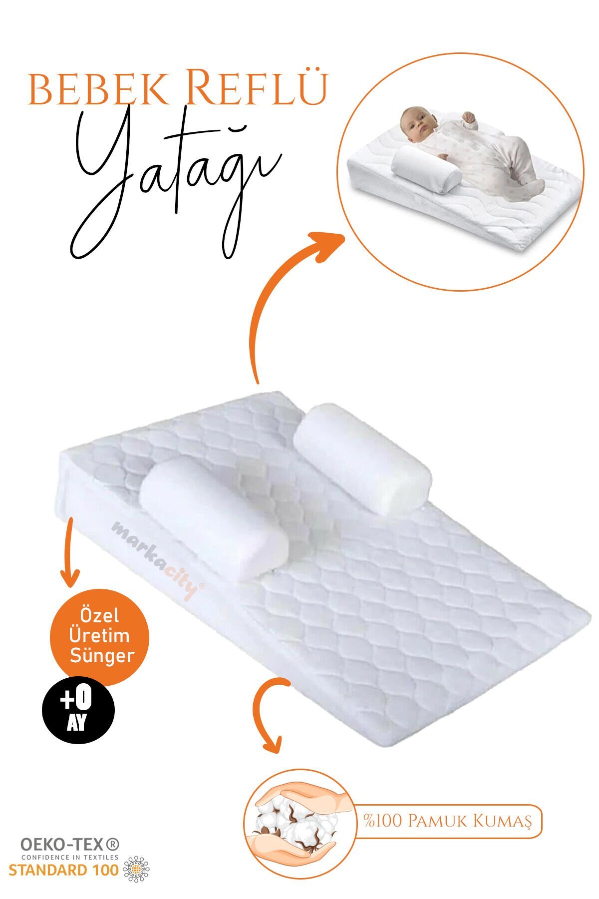 Markacity reflü yatağı bebeğin yatış pozisyonunu ayarlayarak mide asidinin yemek borusuna kaçmasına engellemeye yardımcı olur