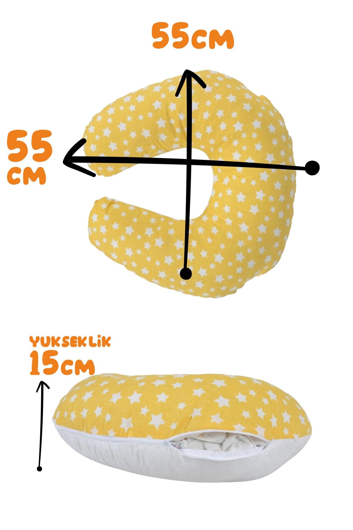 Çift Taraflı Bebek Emzirme Yastığı, Destek Minderi, Hamile Yastığı Pamuklu Kumaş Sarı