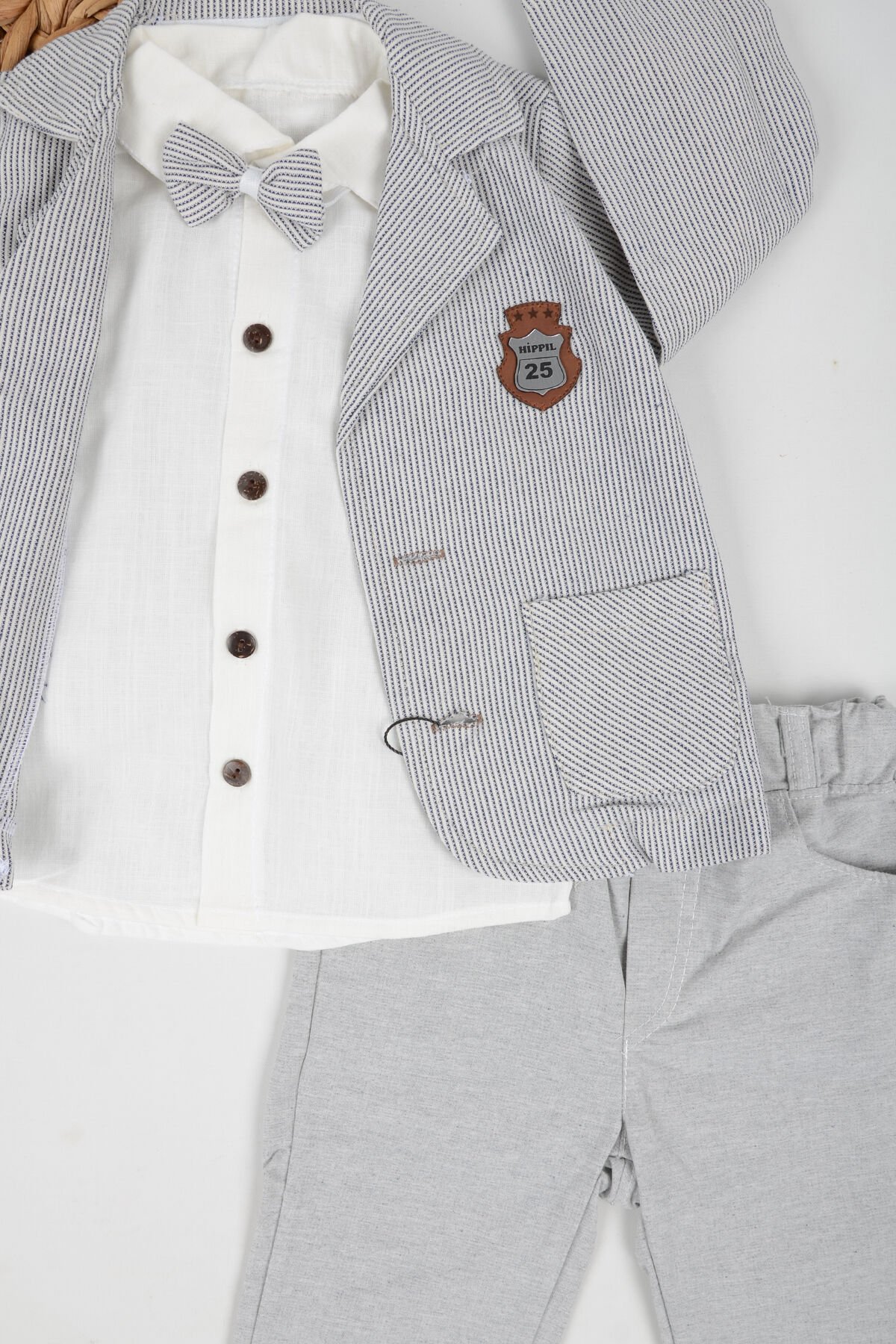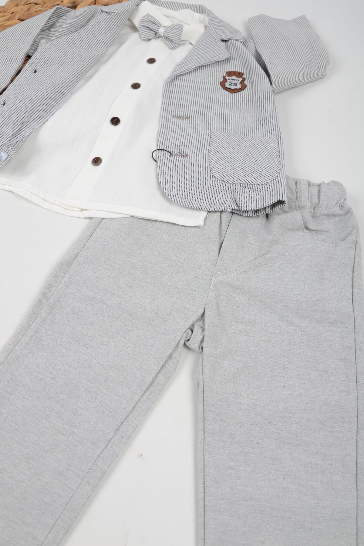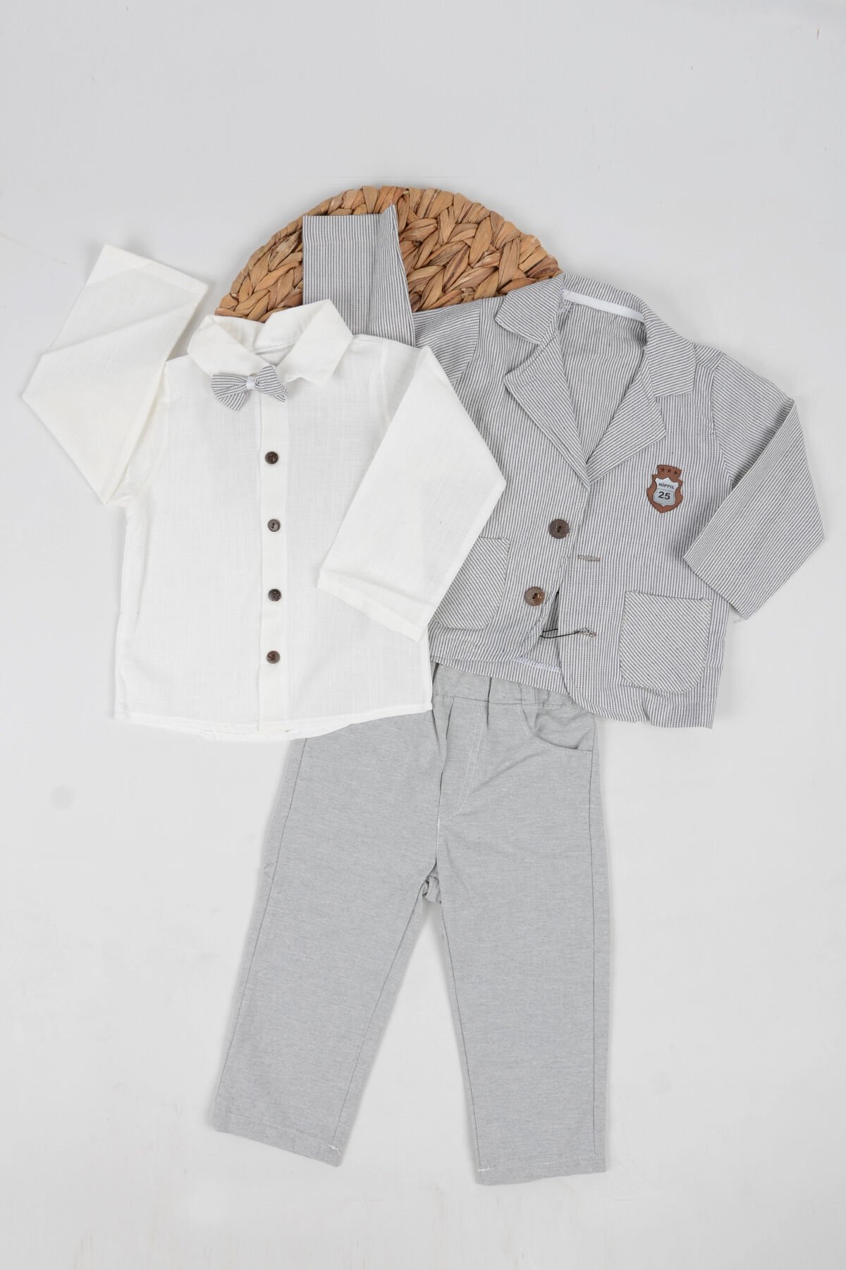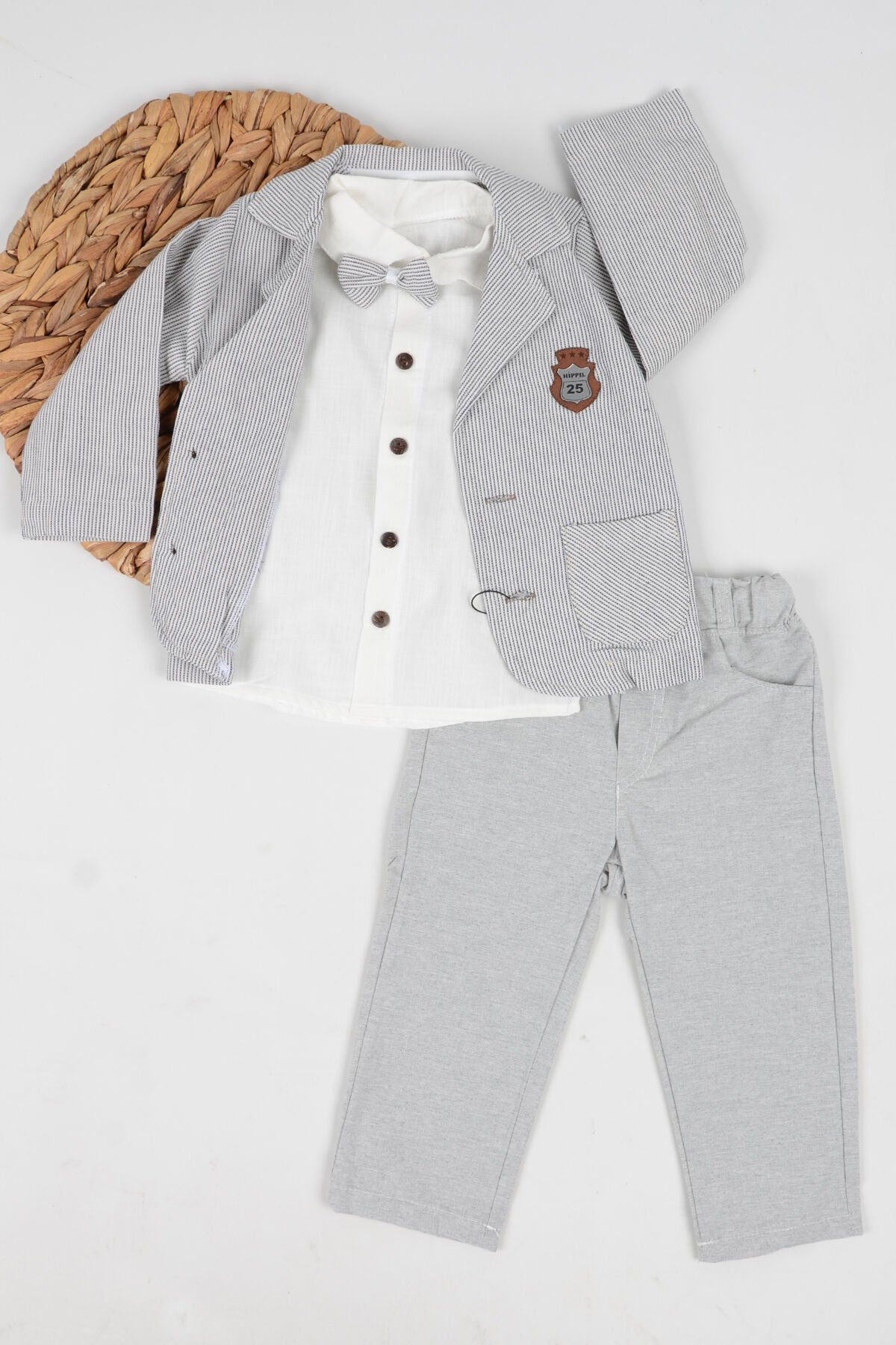 Erkek Çocuk Bayramlık Papyonlu Çizgili Üç Parça Spor Takım
