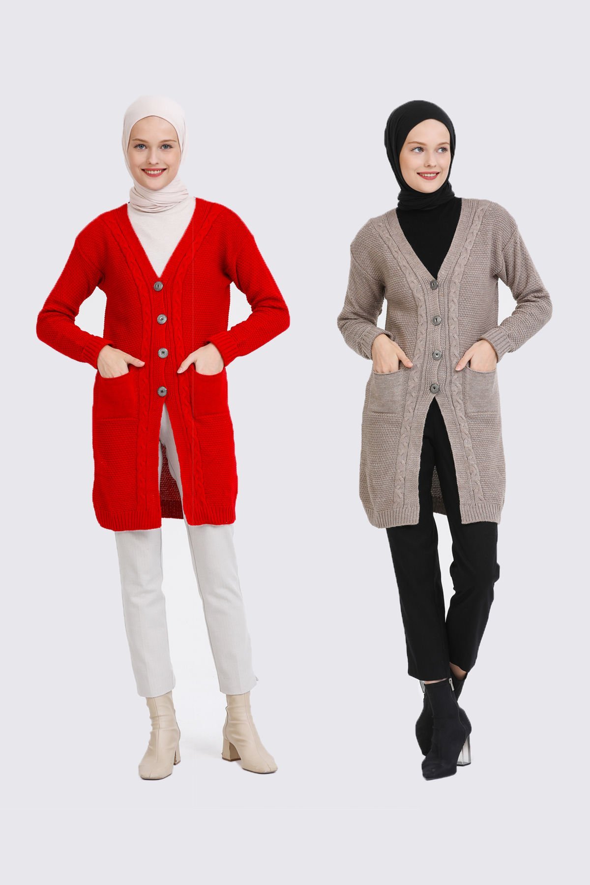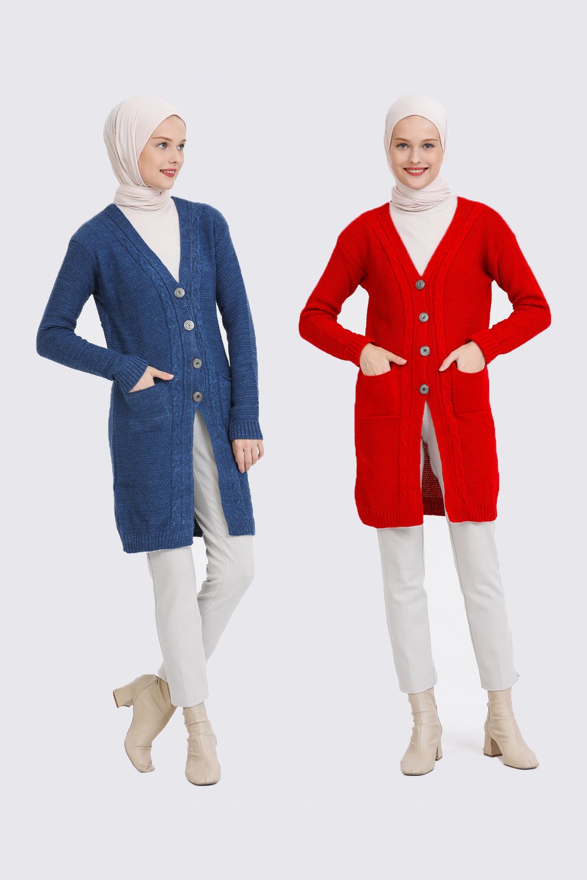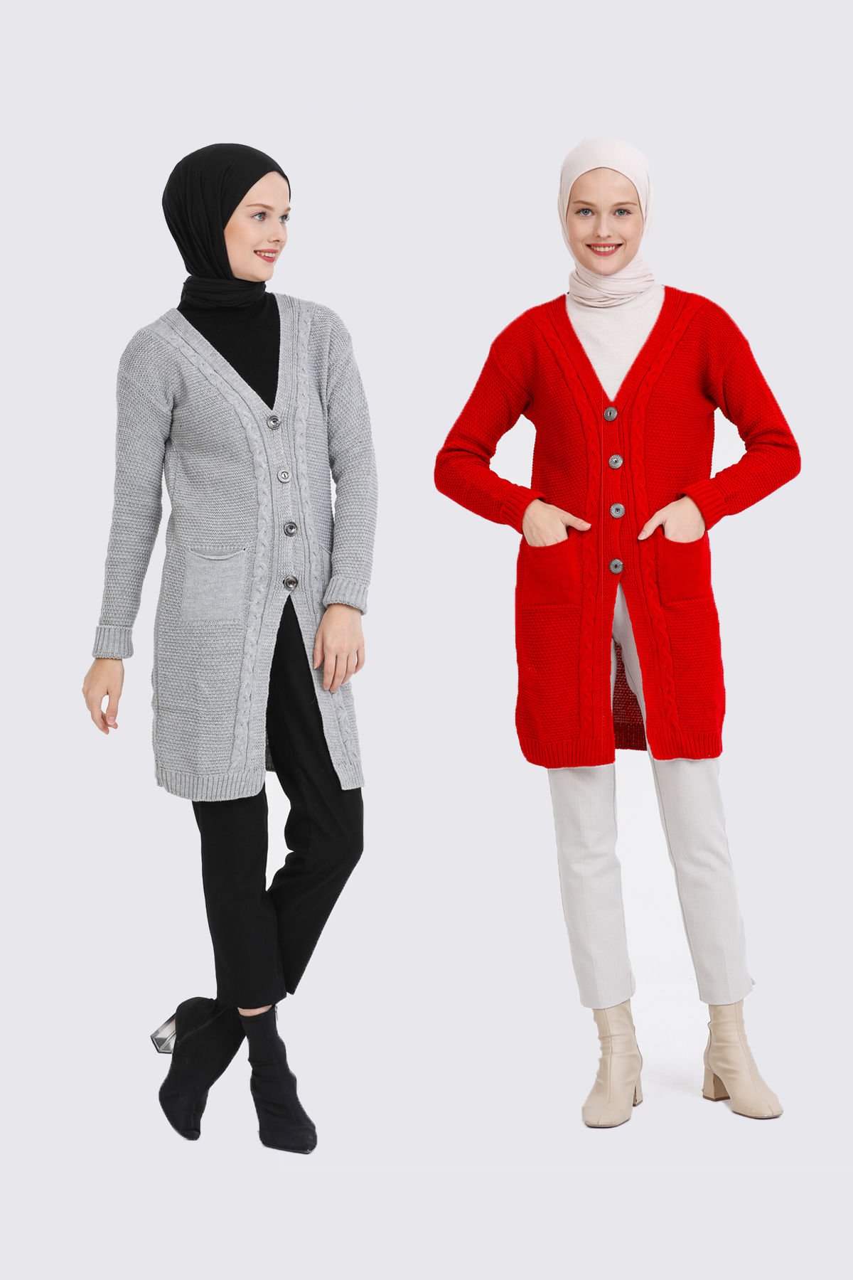 İkili Kadın Triko Hırka Ceket Düğmeli Cepli Özellikleri;