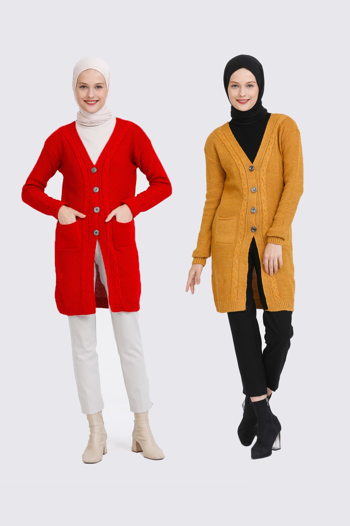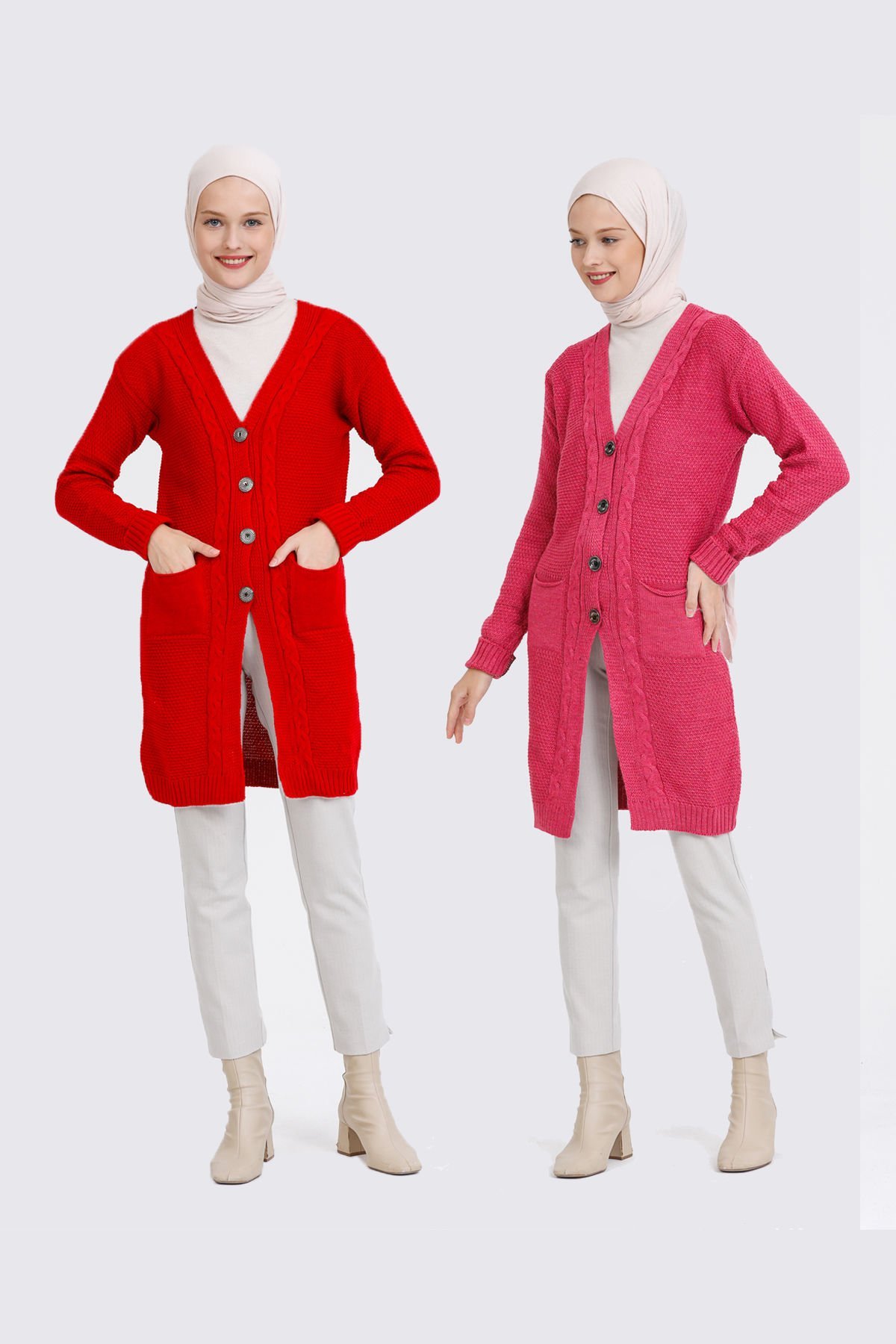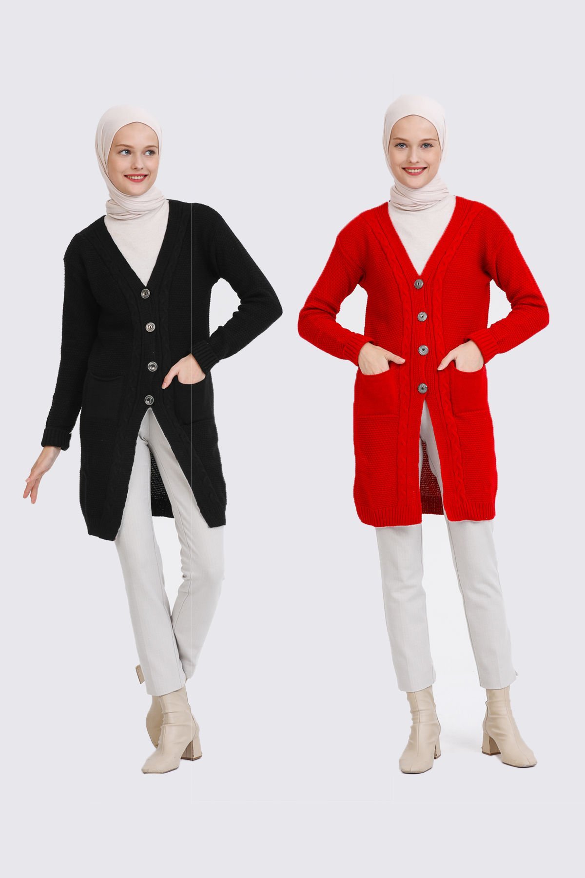 İkili Kadın Triko Hırka Ceket Düğmeli Cepli Özellikleri;