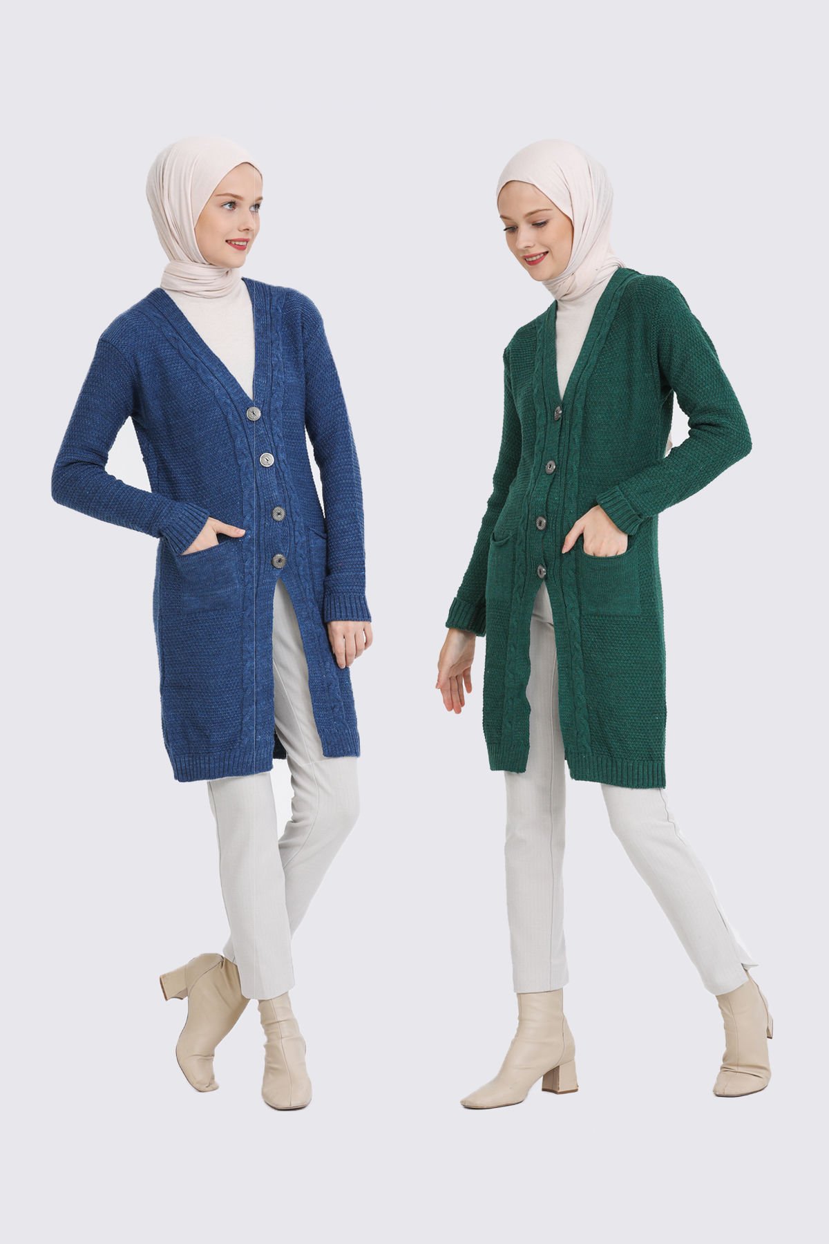 İkili Kadın Triko Hırka Ceket Düğmeli Cepli Özellikleri;
