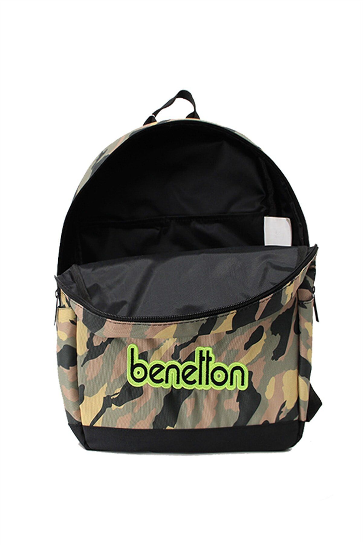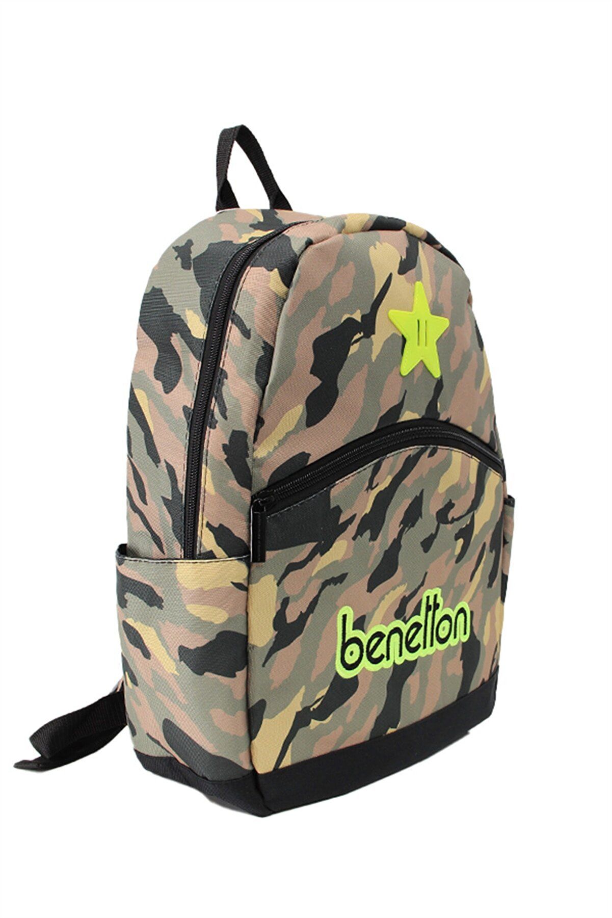 IRK Benetton Yıldızlı Kamuflaj Desenli Lüx Okul Sırt Çanta Haki