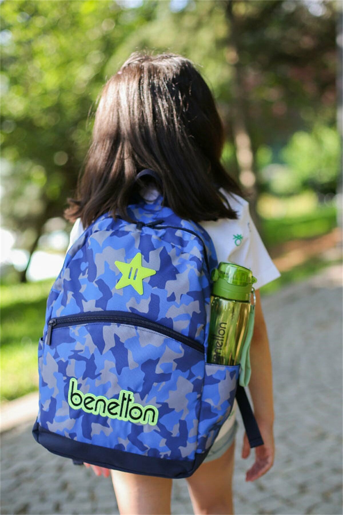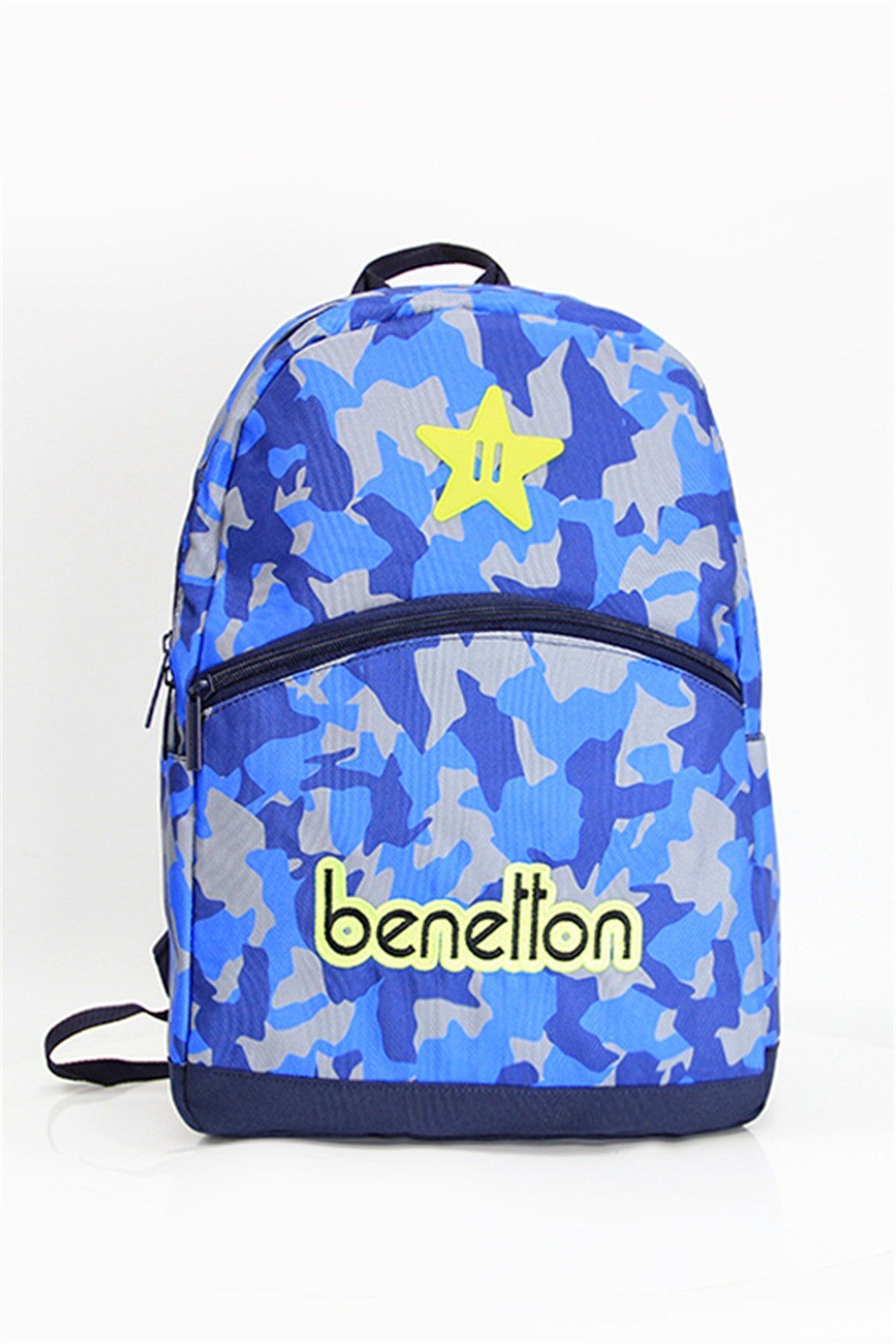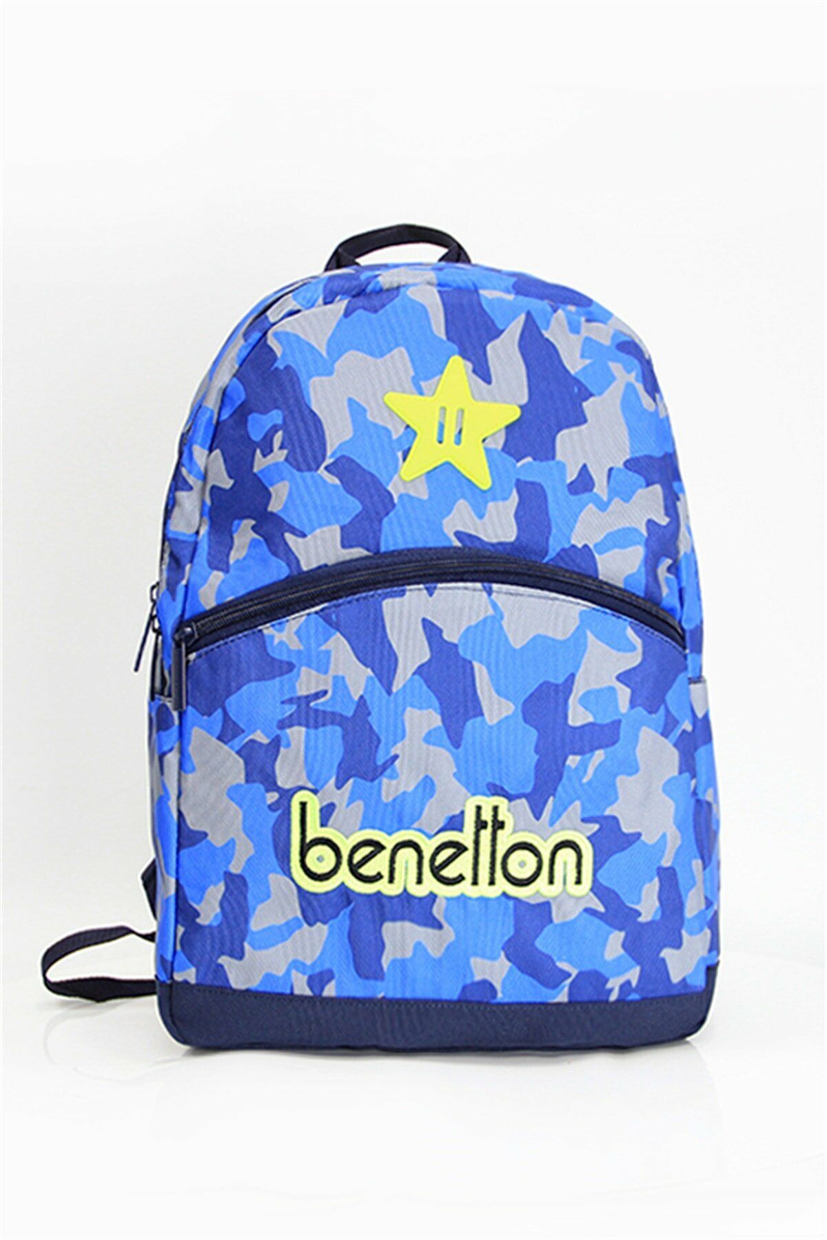 IRK Benetton Yıldızlı Kamuflaj Desenli Lüx Okul Sırt Çanta Mavi
