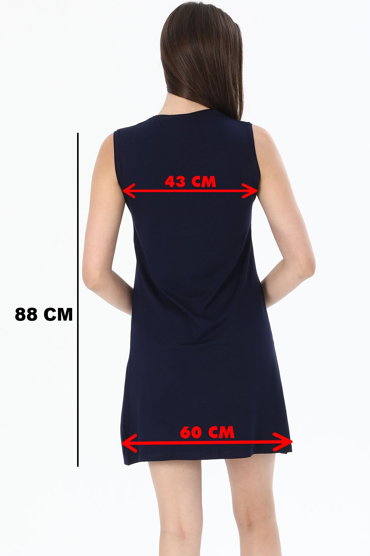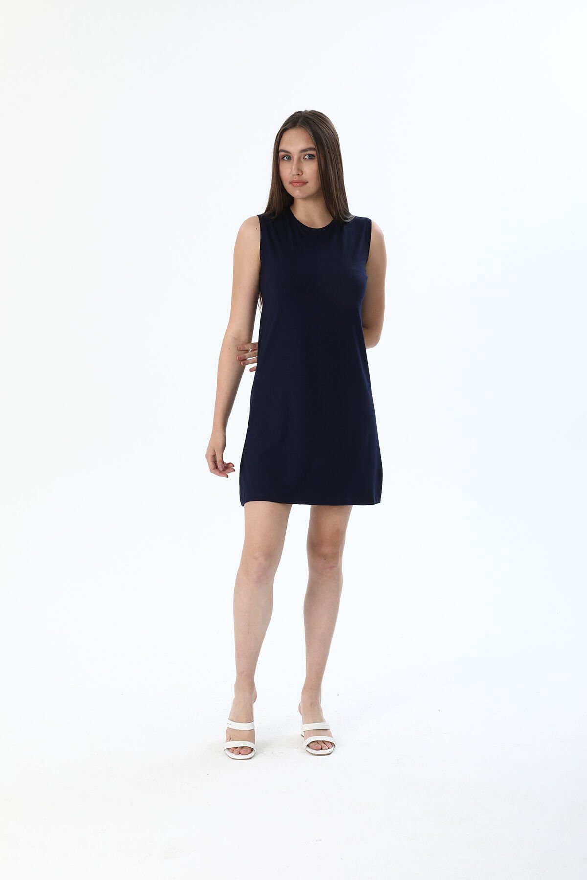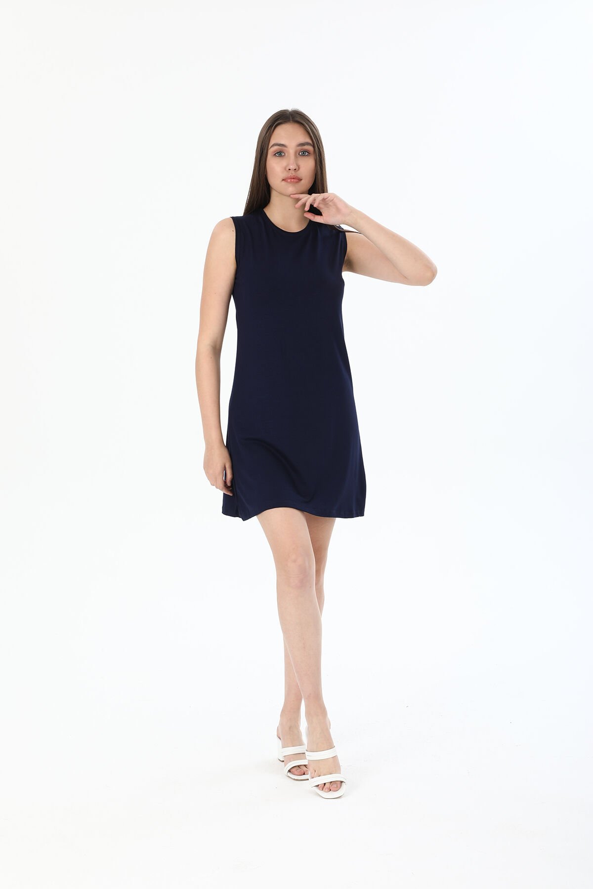 Kadın Bisiklet Yaka Örme Penye Günlük Kolsuz Salaş Elbise M - Lacivert