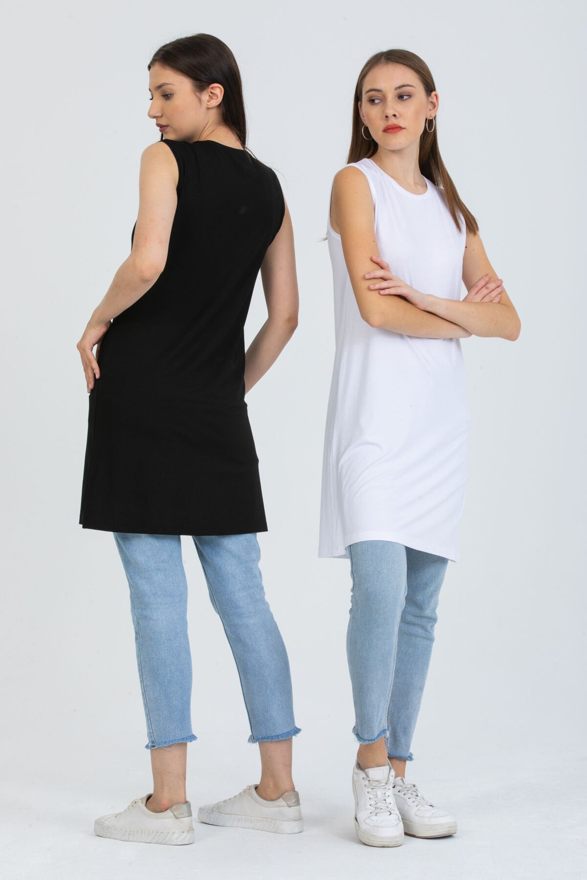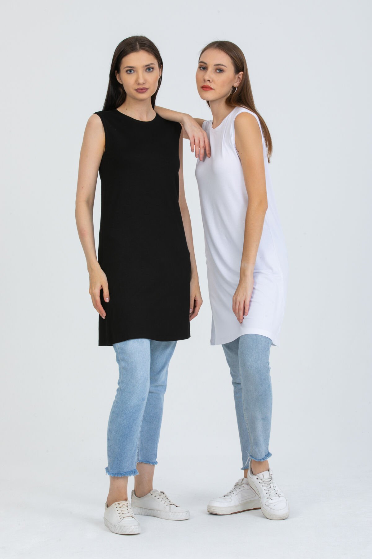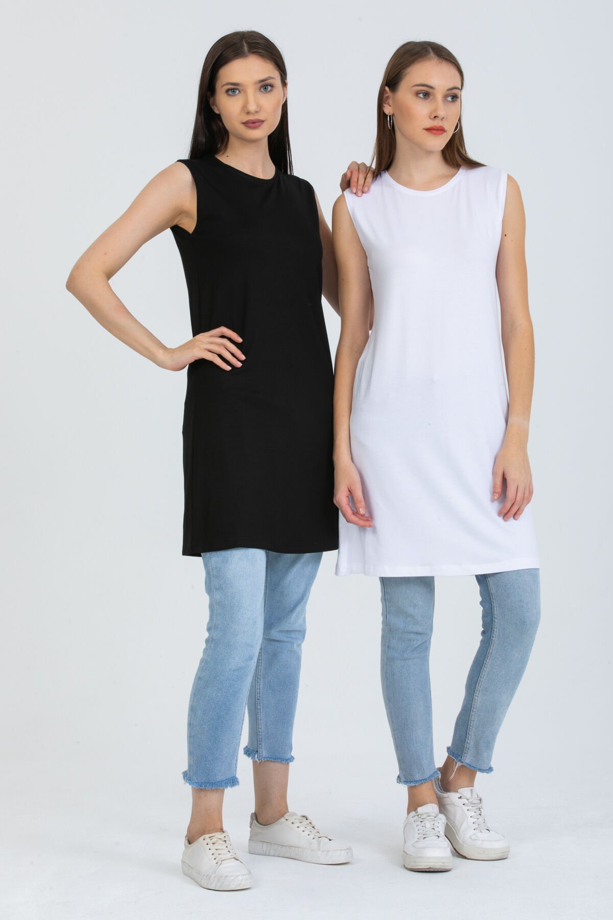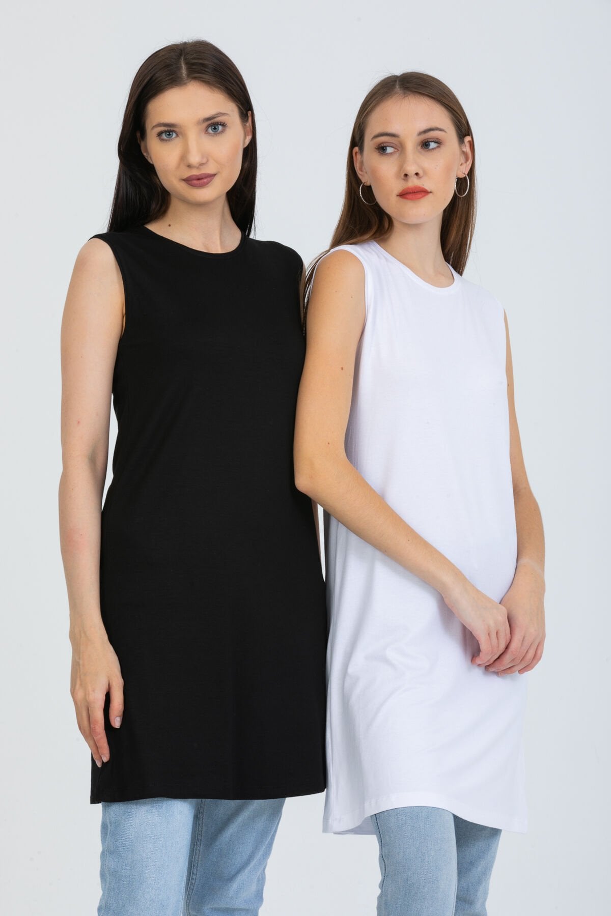 Kadın İkili Sıfır Kol Kurtarıcı Penye İçlik Tunik