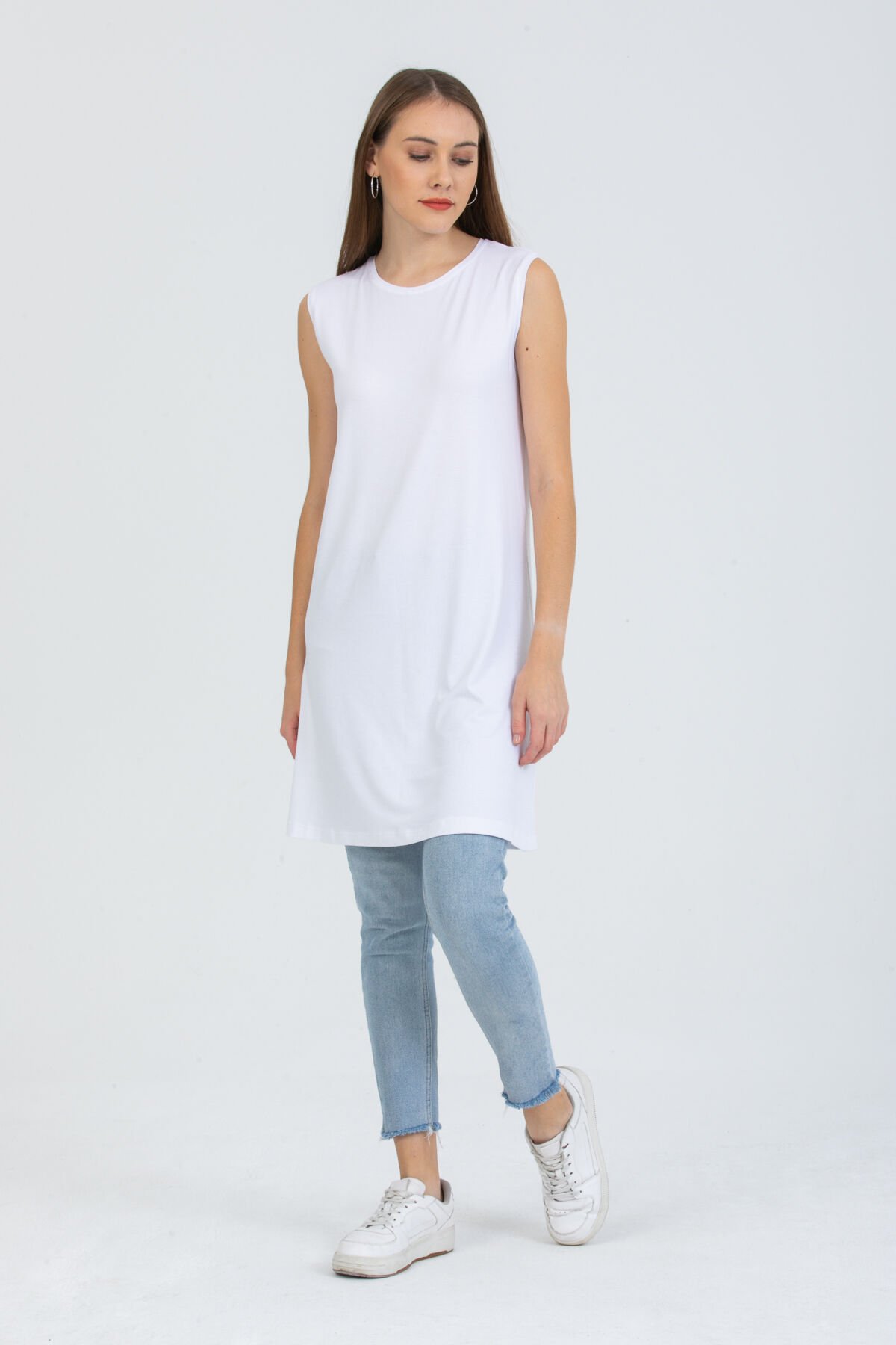 Kadın İkili Sıfır Kol Kurtarıcı Penye İçlik Tunik S - BEYAZ-BEYAZ