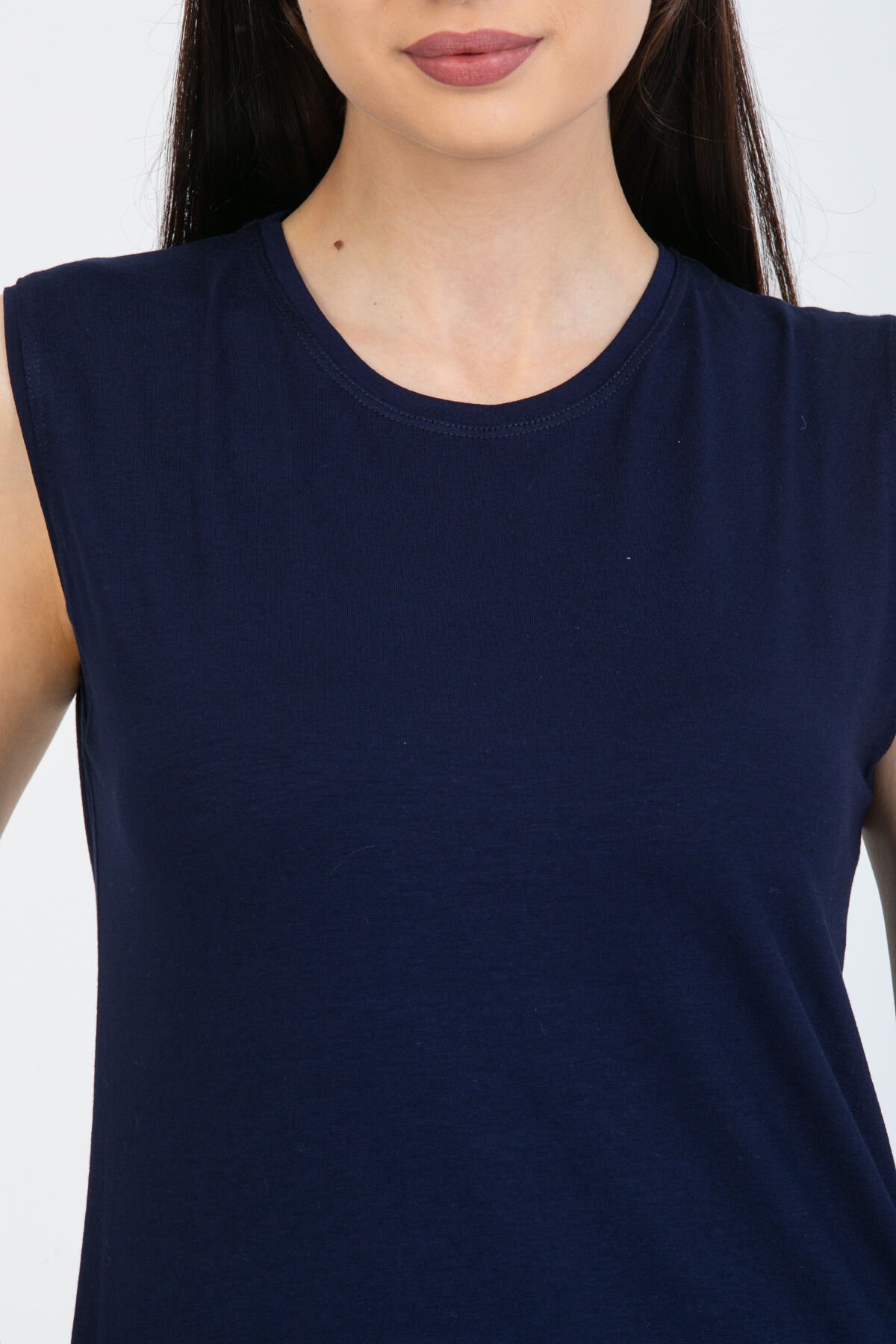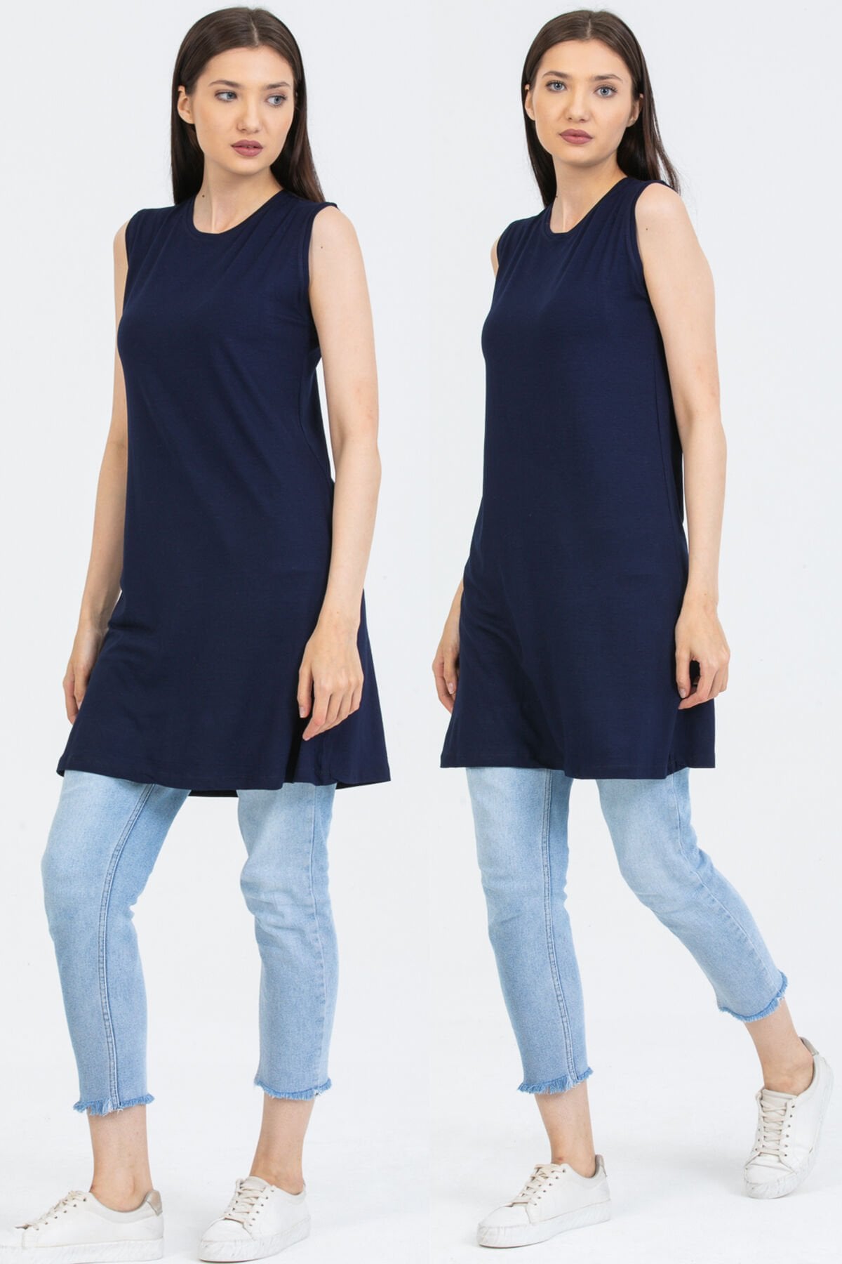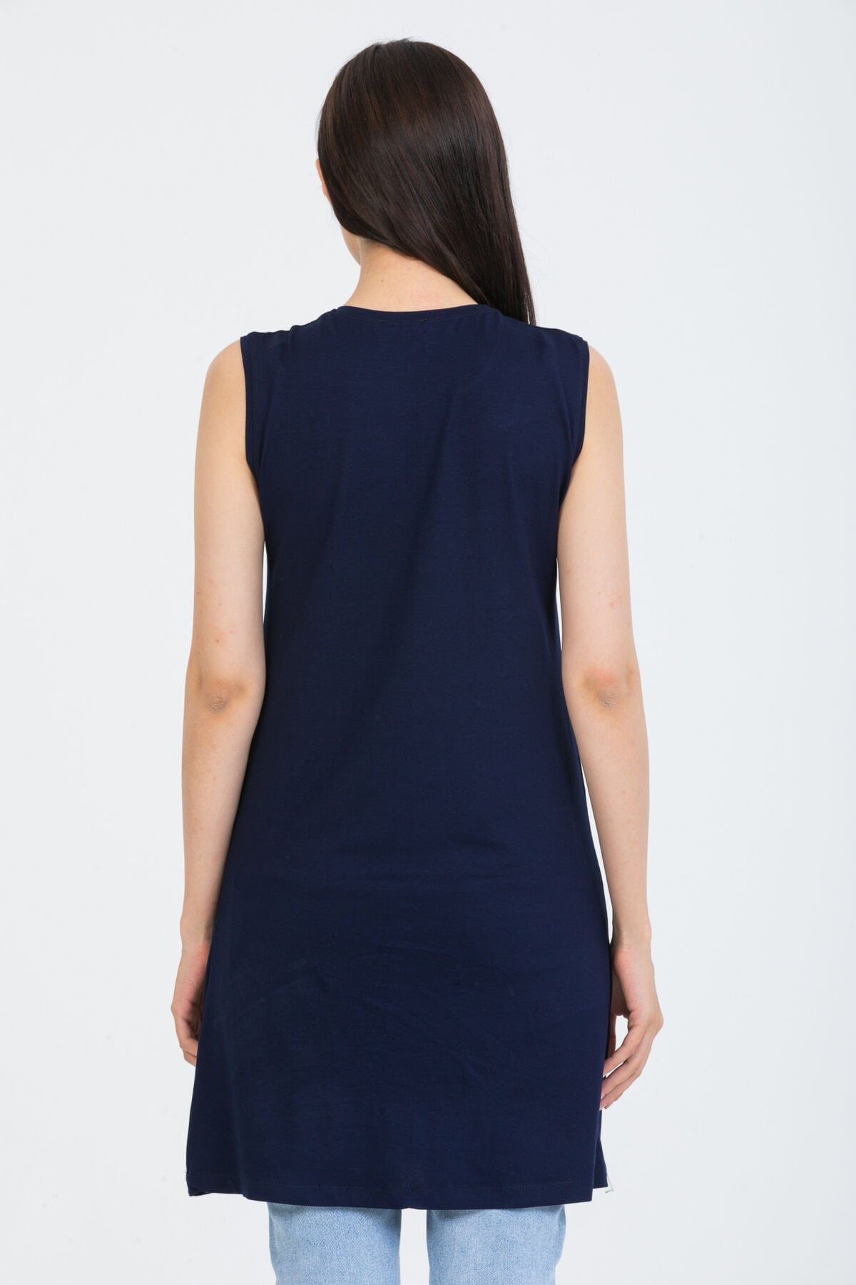 Kadın İkili Sıfır Kol Kurtarıcı Penye İçlik Tunik S - LACİVERT-LACİVERT