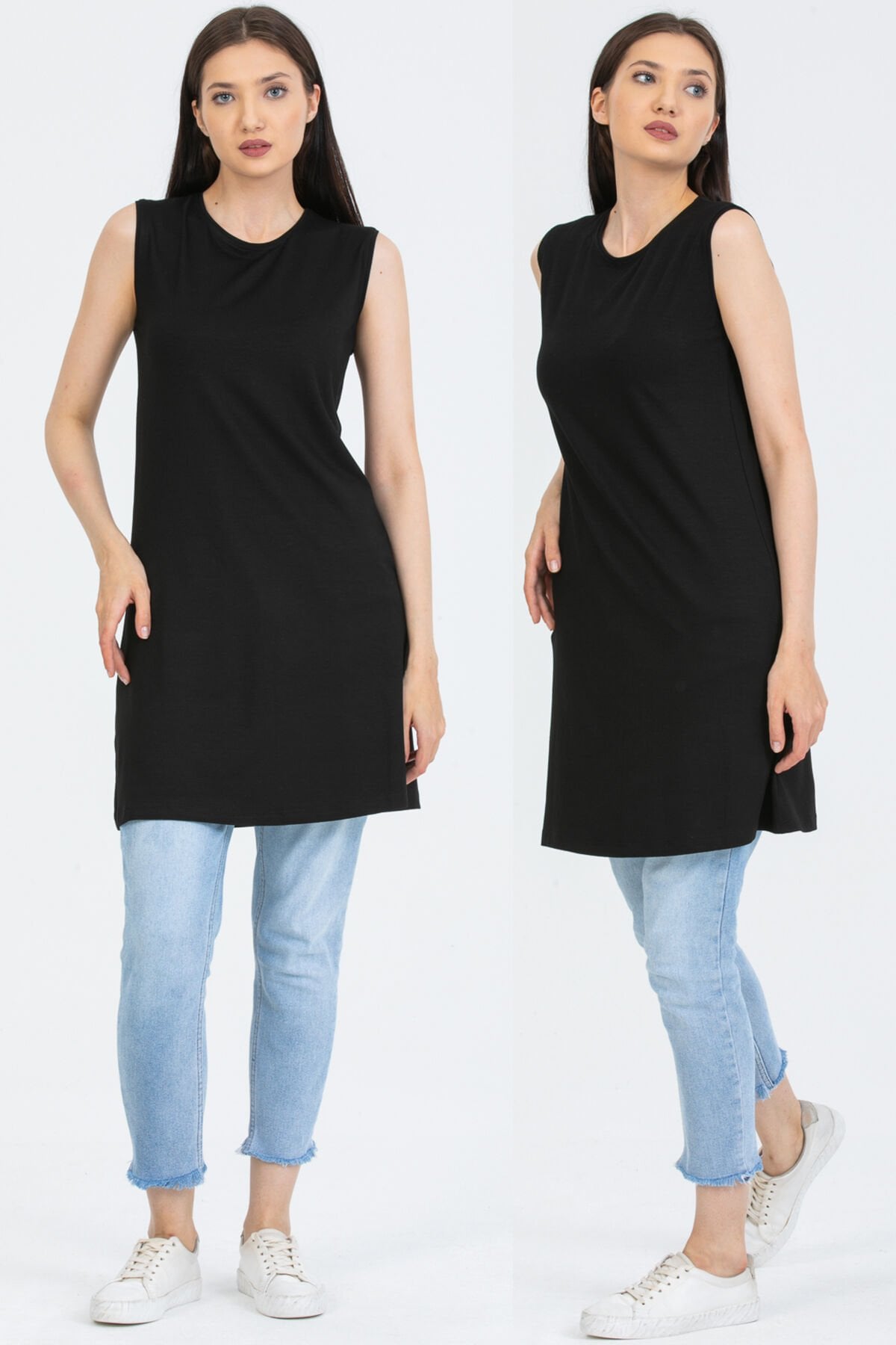 Kadın İkili Sıfır Kol Kurtarıcı Penye İçlik Tunik S - SİYAH-SİYAH