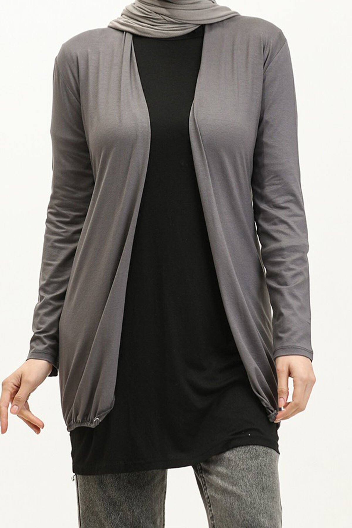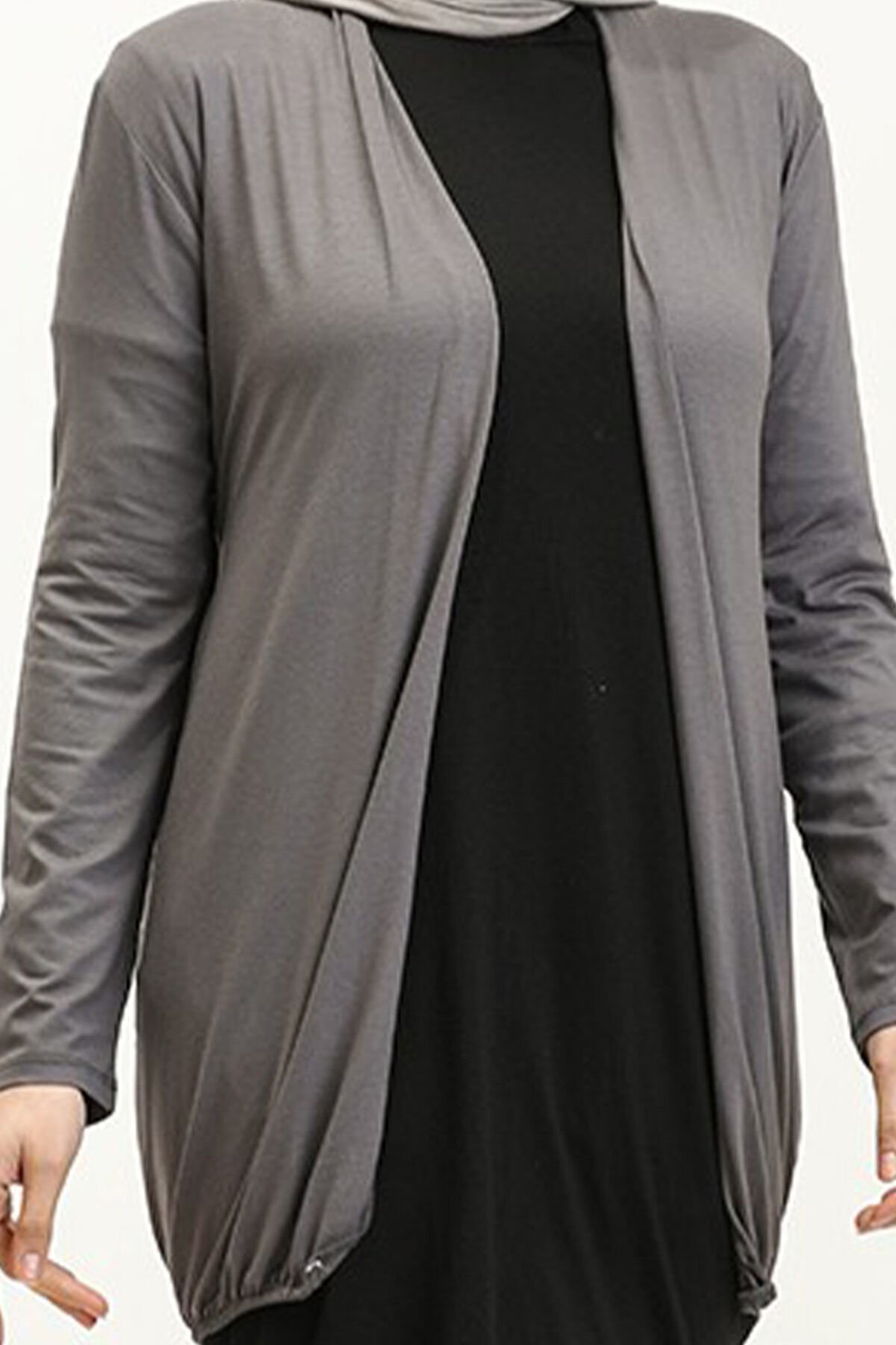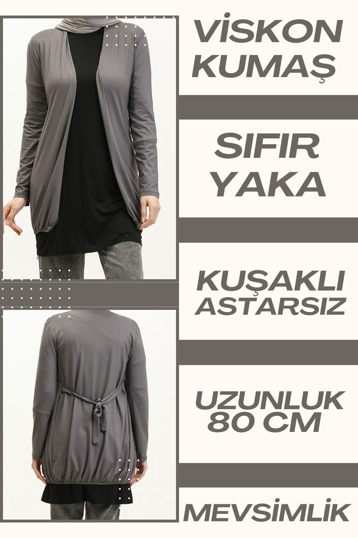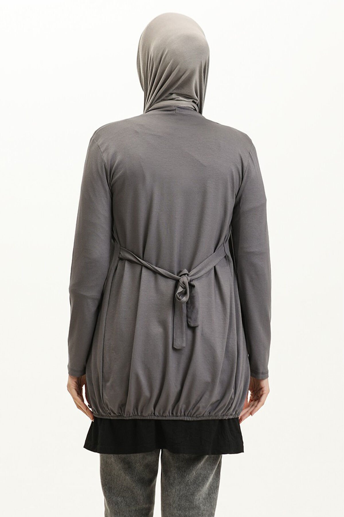 Kadın Kuşaklı Viskon Lastikli Spor Ceket Tesettür Hırka