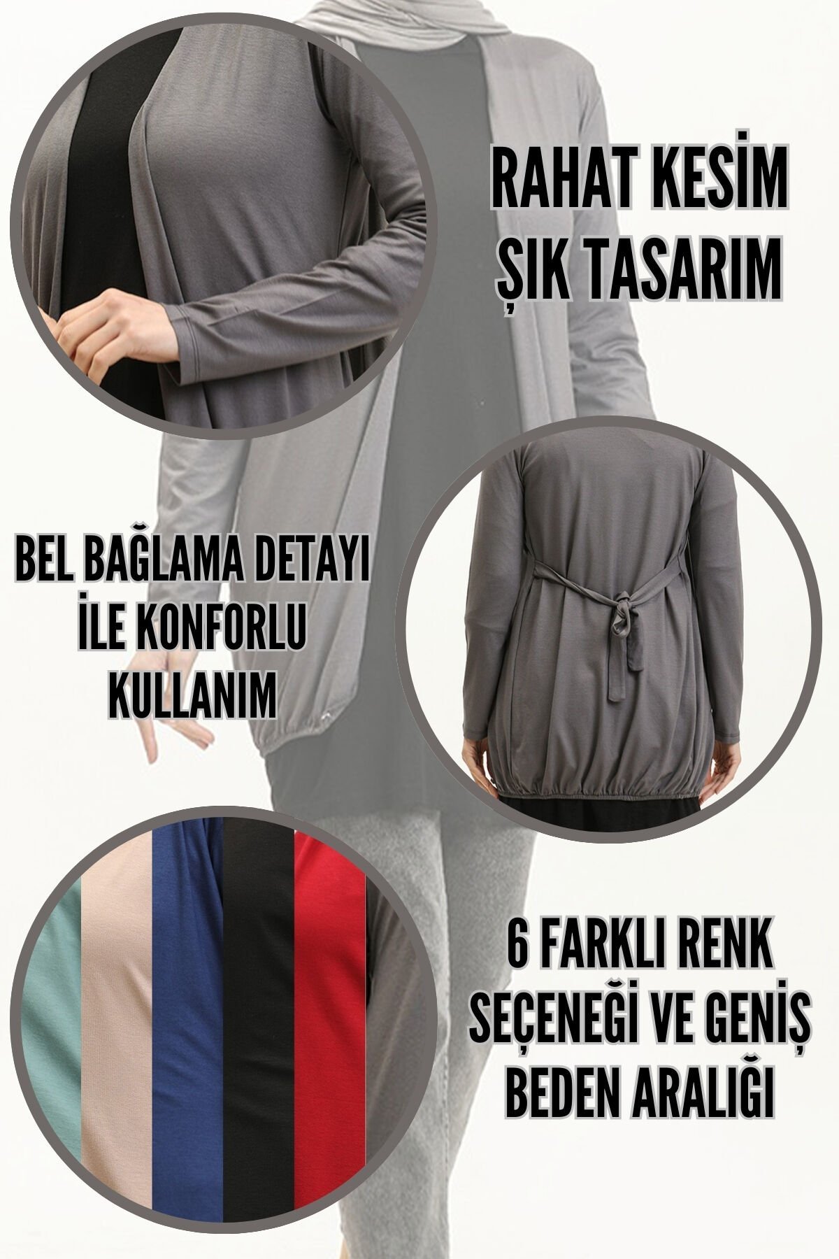 - Hem günlük kullanıma hem de özel günlerde tercih edebileceğiniz Kadın Kuşaklı Viskon Lastikli Spor Ceket Tesettür Hırka, şıklığı ve konforu bir arada arayan kadınların favorisi olacak!