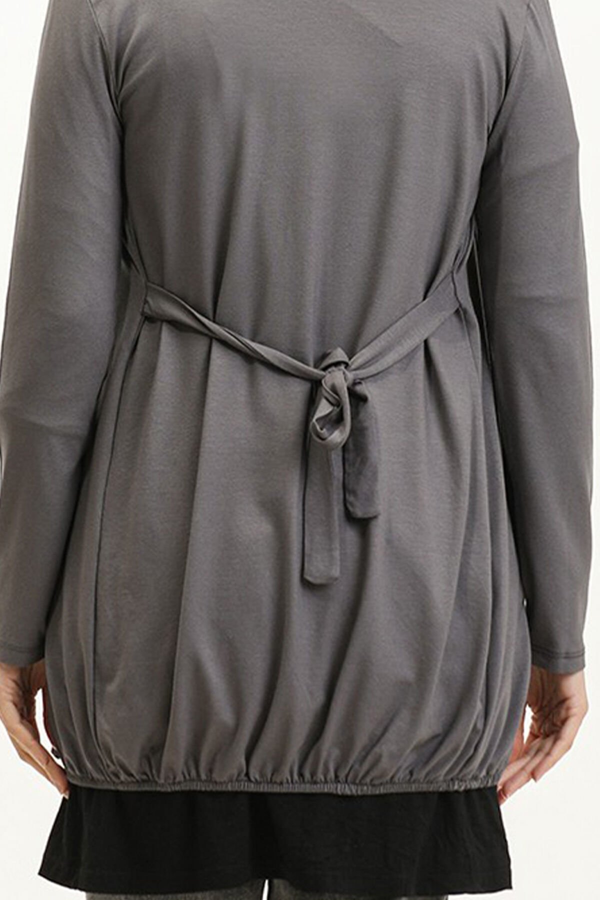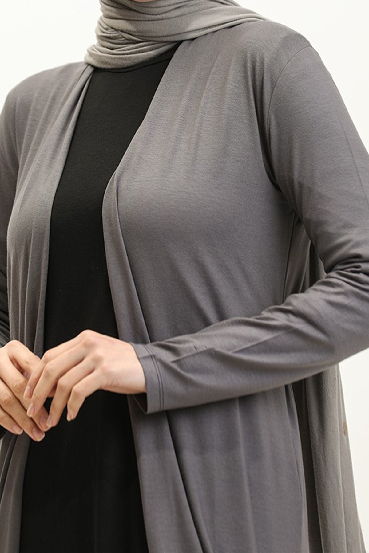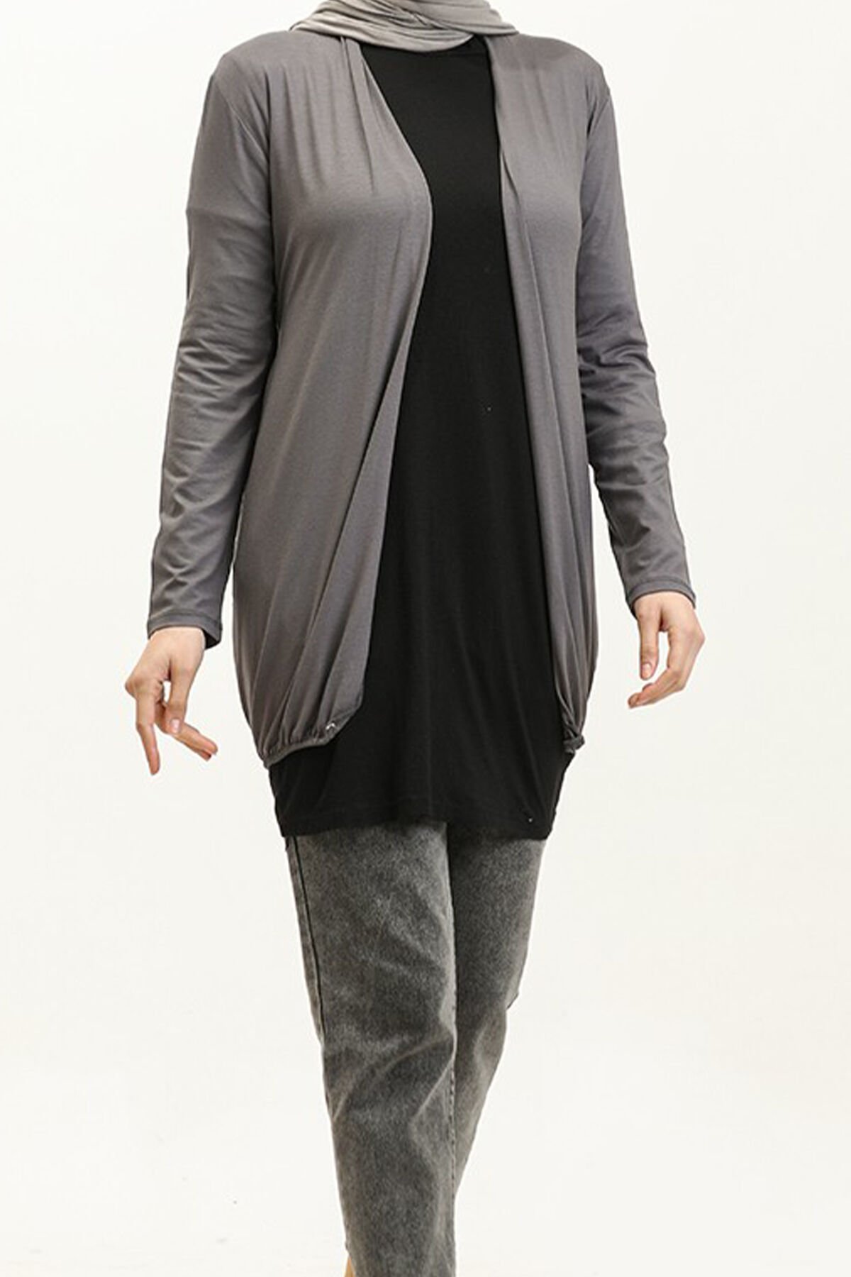 Kadın Kuşaklı Viskon Lastikli Spor Ceket Tesettür Hırka