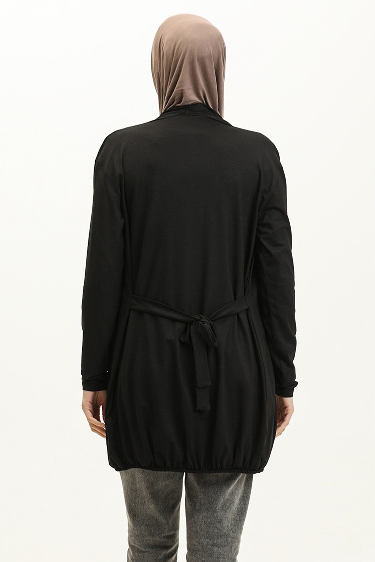 Kadın Kuşaklı Viskon Lastikli Spor Ceket Tesettür Hırka M - Siyah