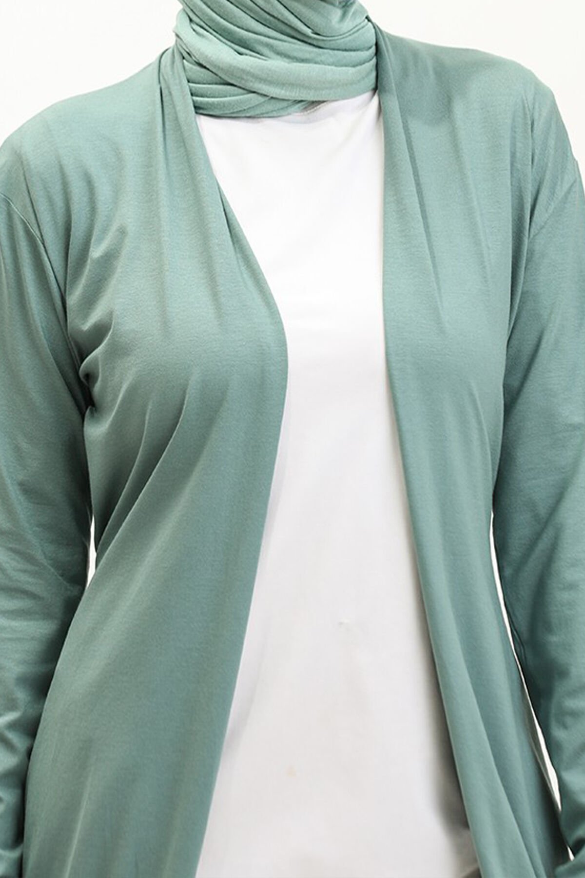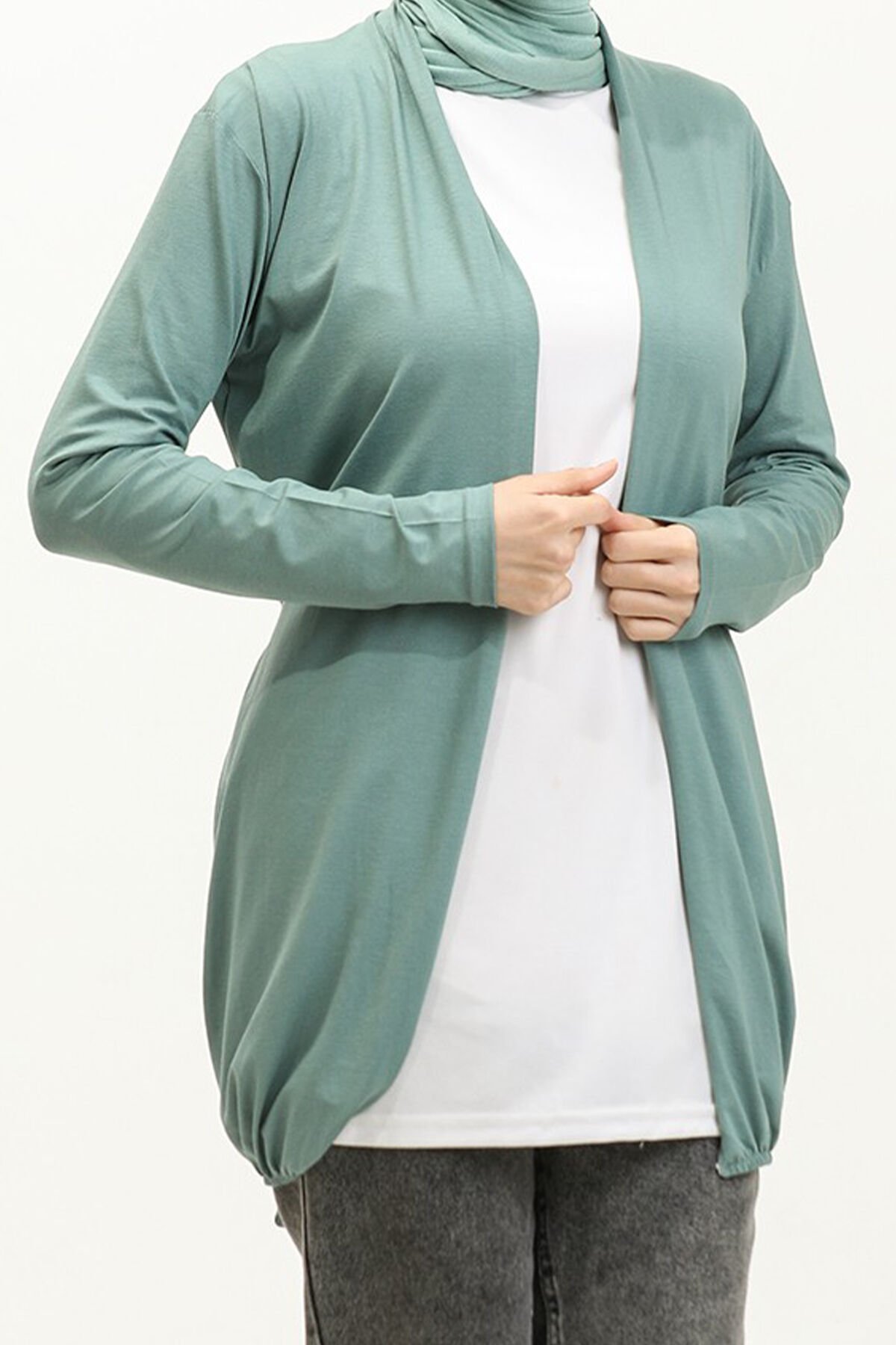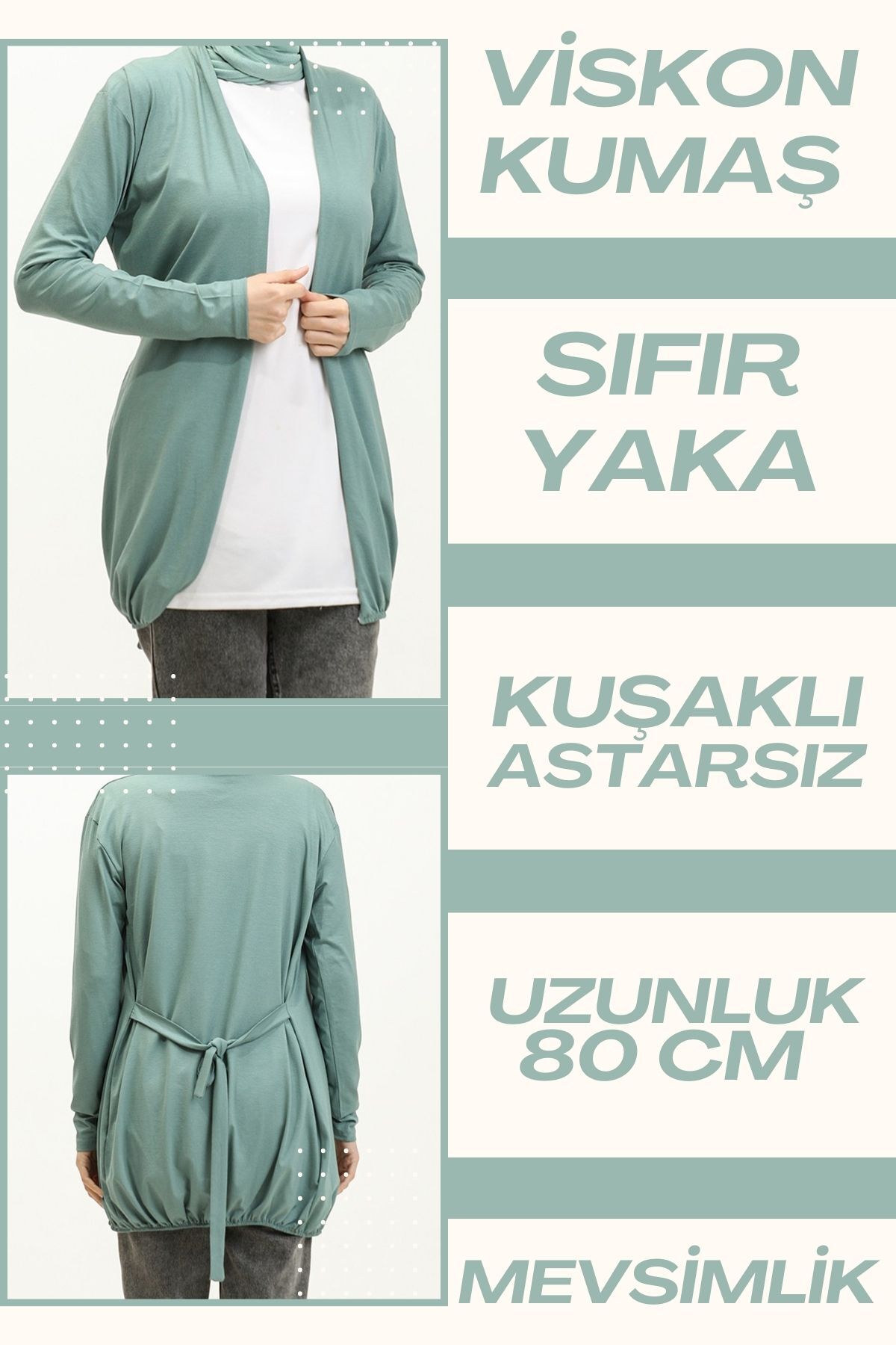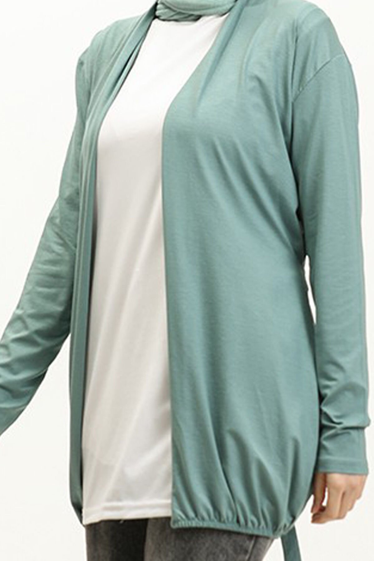 Kadın Kuşaklı Viskon Lastikli Spor Ceket Tesettür Hırka M - Yeşil