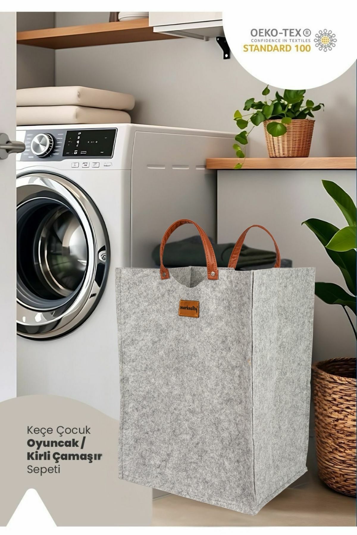 Keçe Çocuk Oyuncak & Kirli Sepeti Kutusu Çok Amaçlı Saklama Organizeri Gri