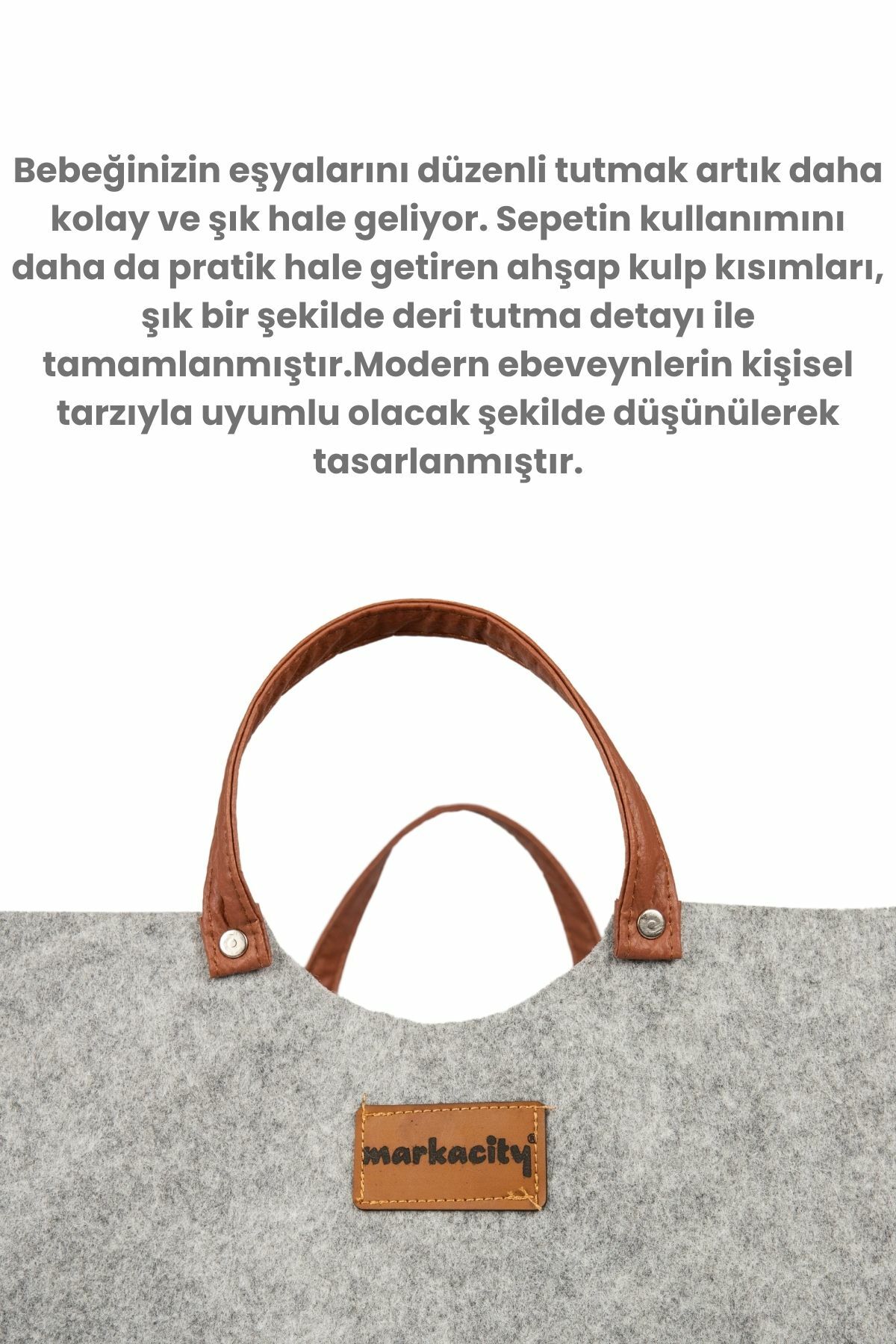 Çocuk odalarında düzen ve şıklık sağlamak isteyenler için ideal bir çözüm! Keçe oyuncak kutusu, geniş ölçüleri (50x36x30 cm) ile oyuncaklardan kıyafetlere kadar pek çok eşyayı saklayabileceğiniz geniş bir alan sunar. Dayanıklı keçe malzemeden üretilmiş olan bu kutu, ahşap ve deri detaylı kulpları sayesinde şıklık ve sağlamlığı bir arada sunar. Bu çok amaçlı saklama kutusu, çocuk odası, salon veya dolap içi organizasyonları için mükemmeldir.