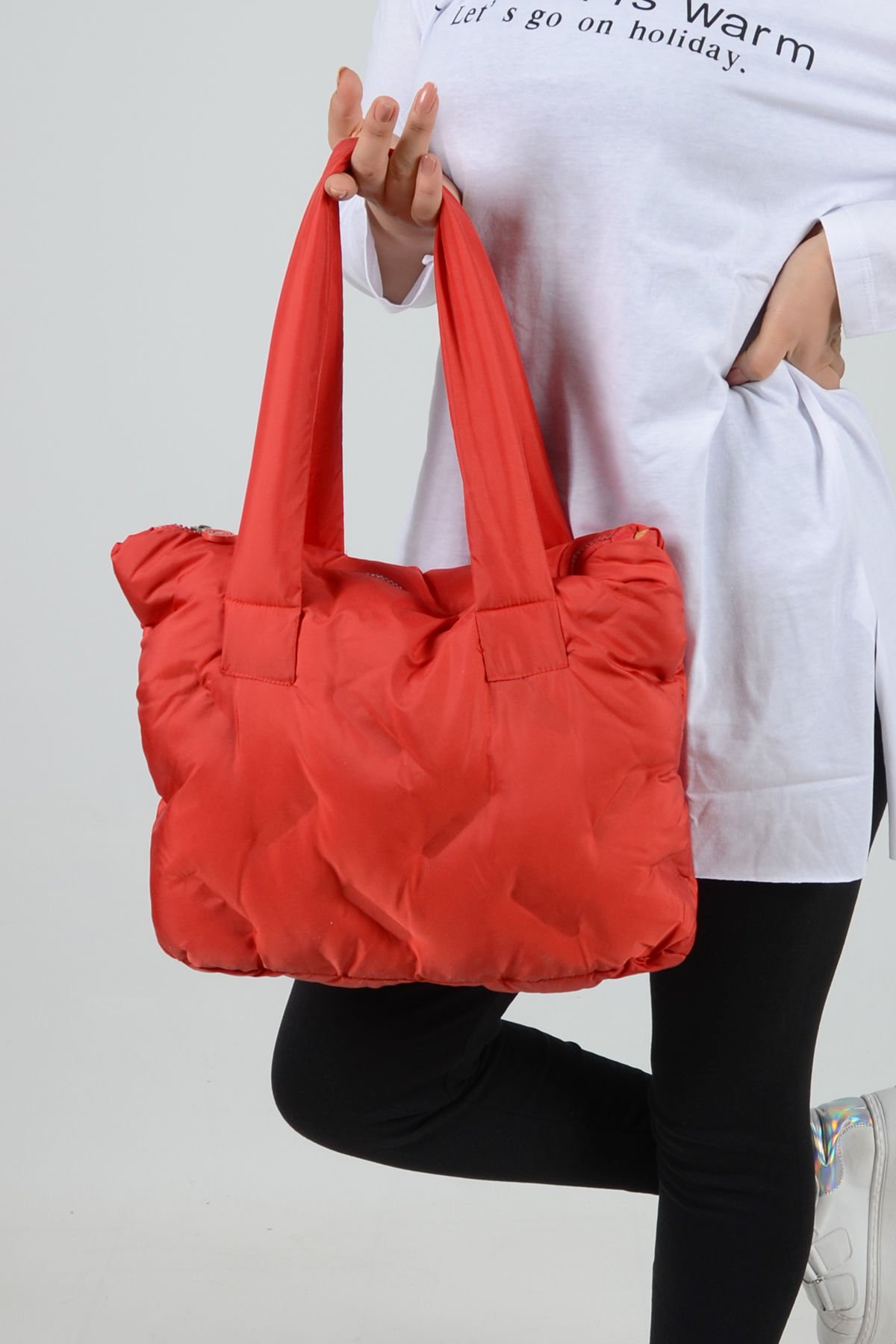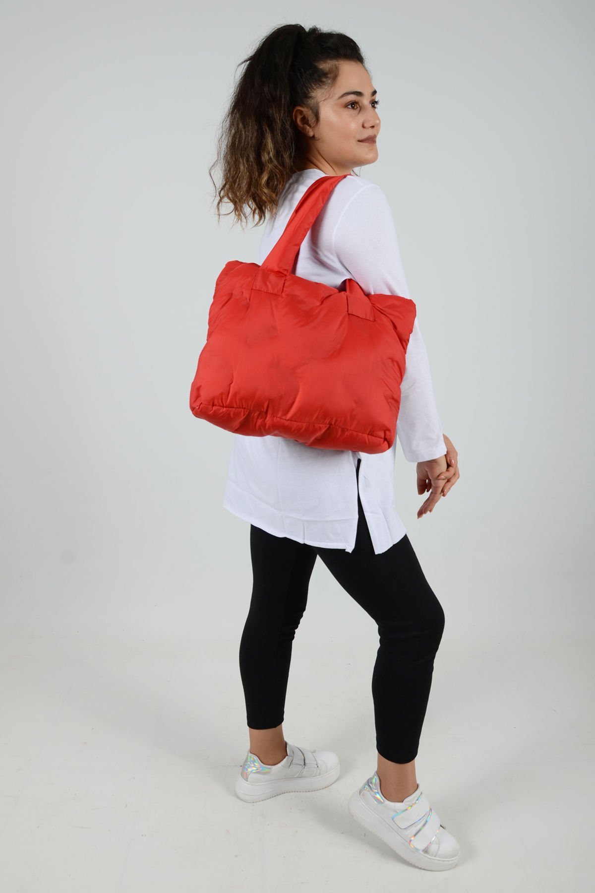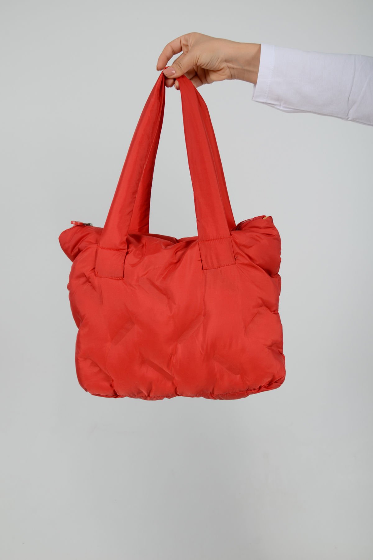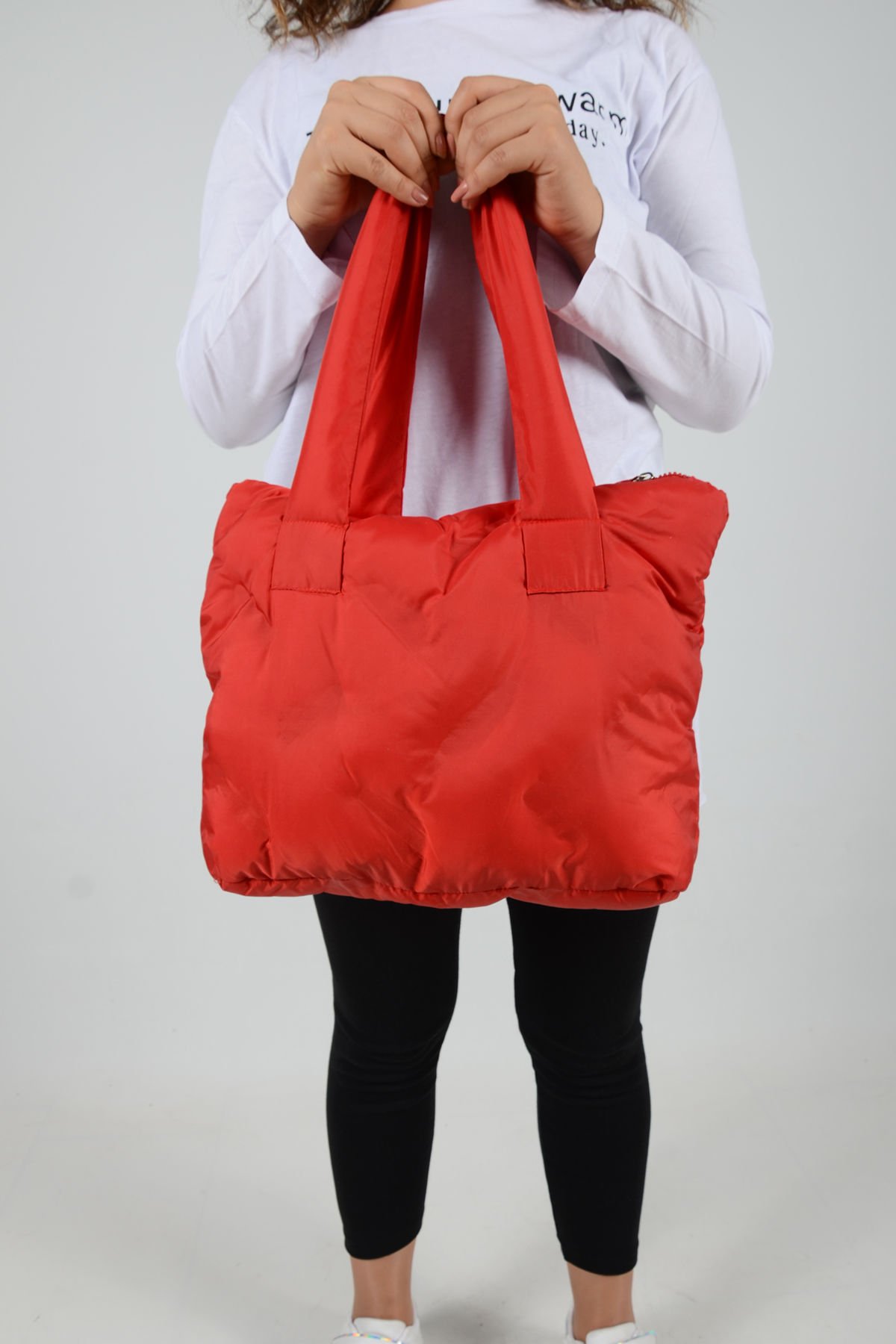 Kumaş Düz Desen Kadın Puf Çanta Kırmızı