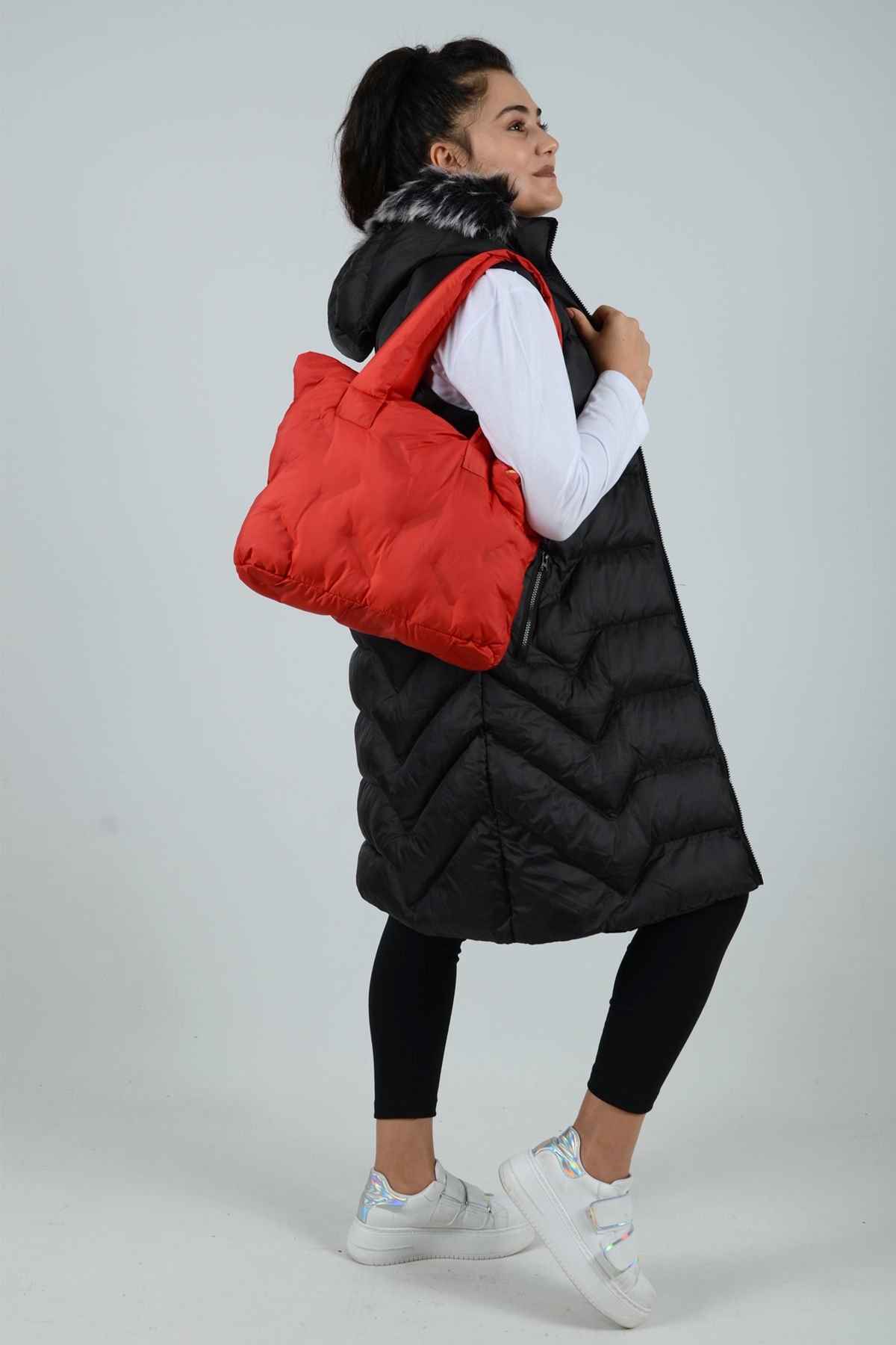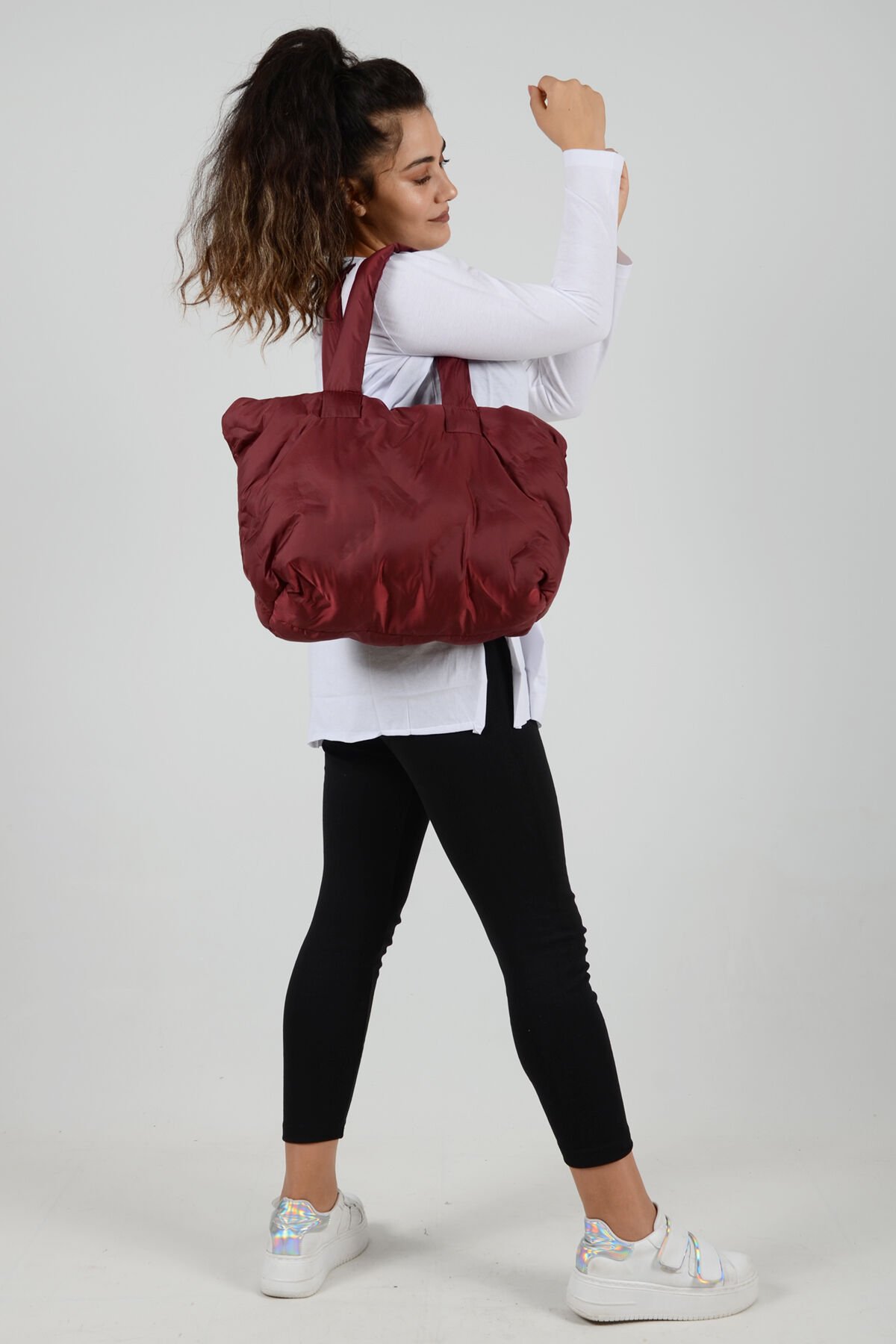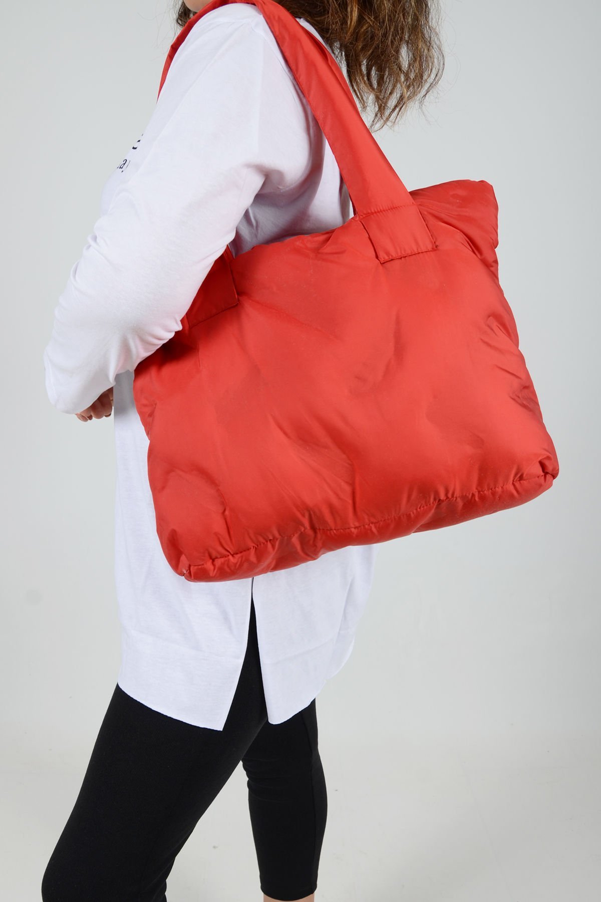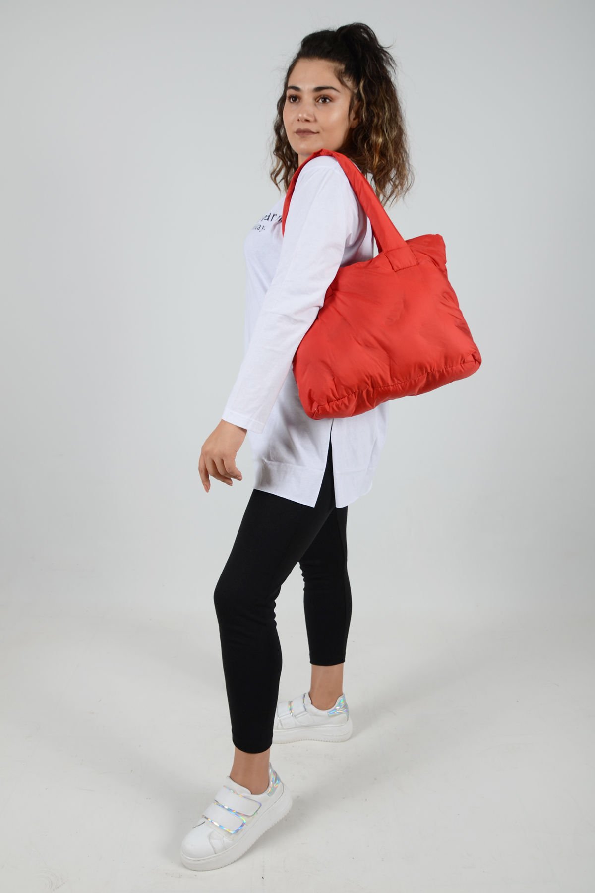 Kumaş Düz Desen Kadın Puf Çanta Kırmızı