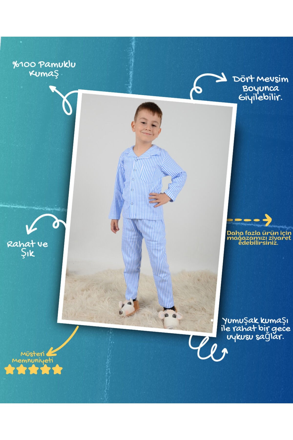 - Erkek Çocuk Önden Düğmeli Çizgili Mavi Gaffur Pijama Takımı Özellikleri