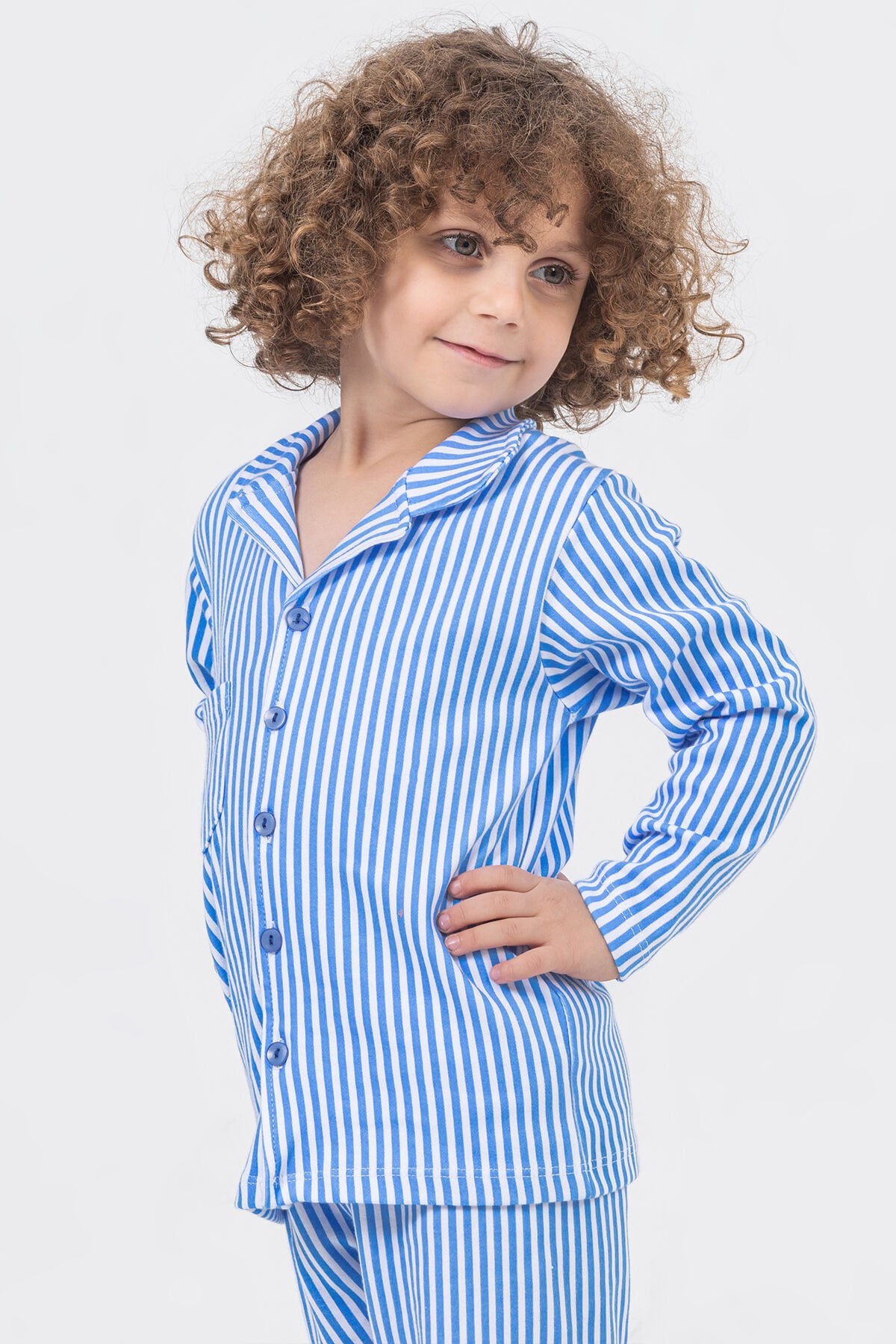 - Çizgili Düğmeli Çocuk Pijama Takımı erkek çocuklar için rahatlık ve şıklığı bir araya getiren harika bir seçenektir.