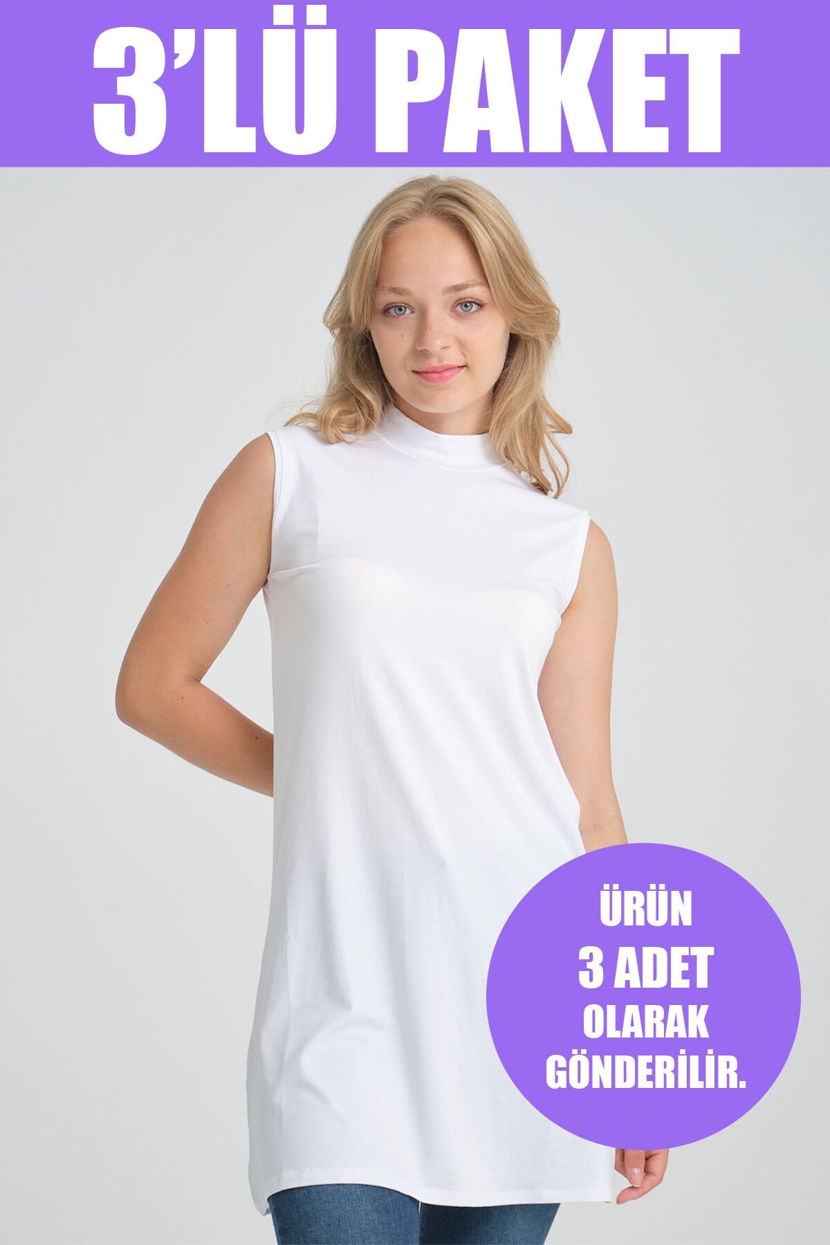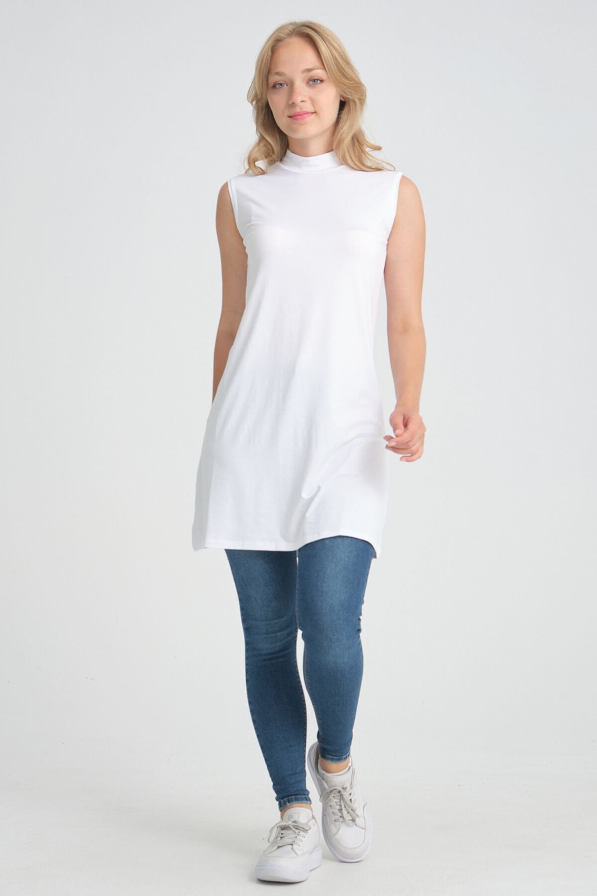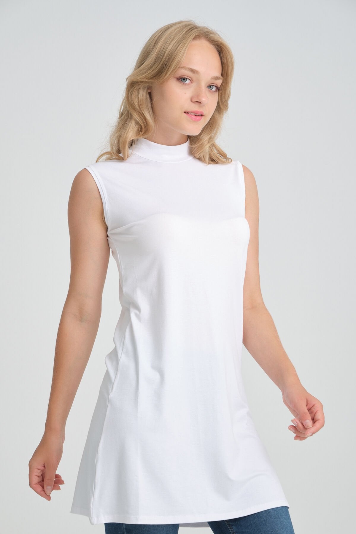 Örme Penye Dik Yaka Kolsuz İçlik Kurtarıcı Sıfır Kol Tesettür Tunik L - BEYAZ-BEYAZ-BEYAZ
