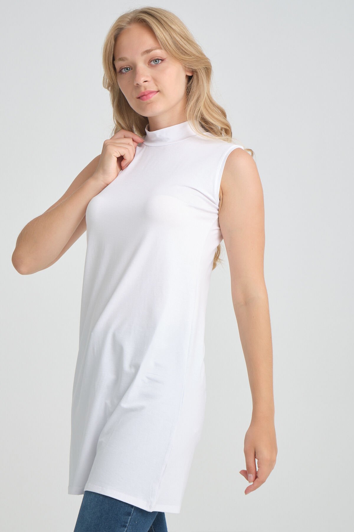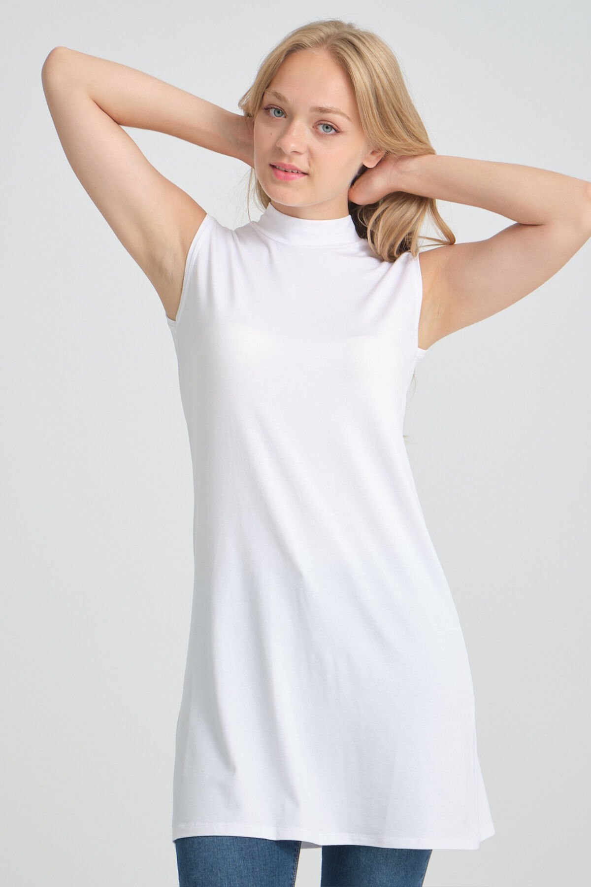 Örme Penye Dik Yaka Kolsuz İçlik Kurtarıcı Sıfır Kol Tesettür Tunik L - BEYAZ-BEYAZ-BEYAZ-BEYAZ