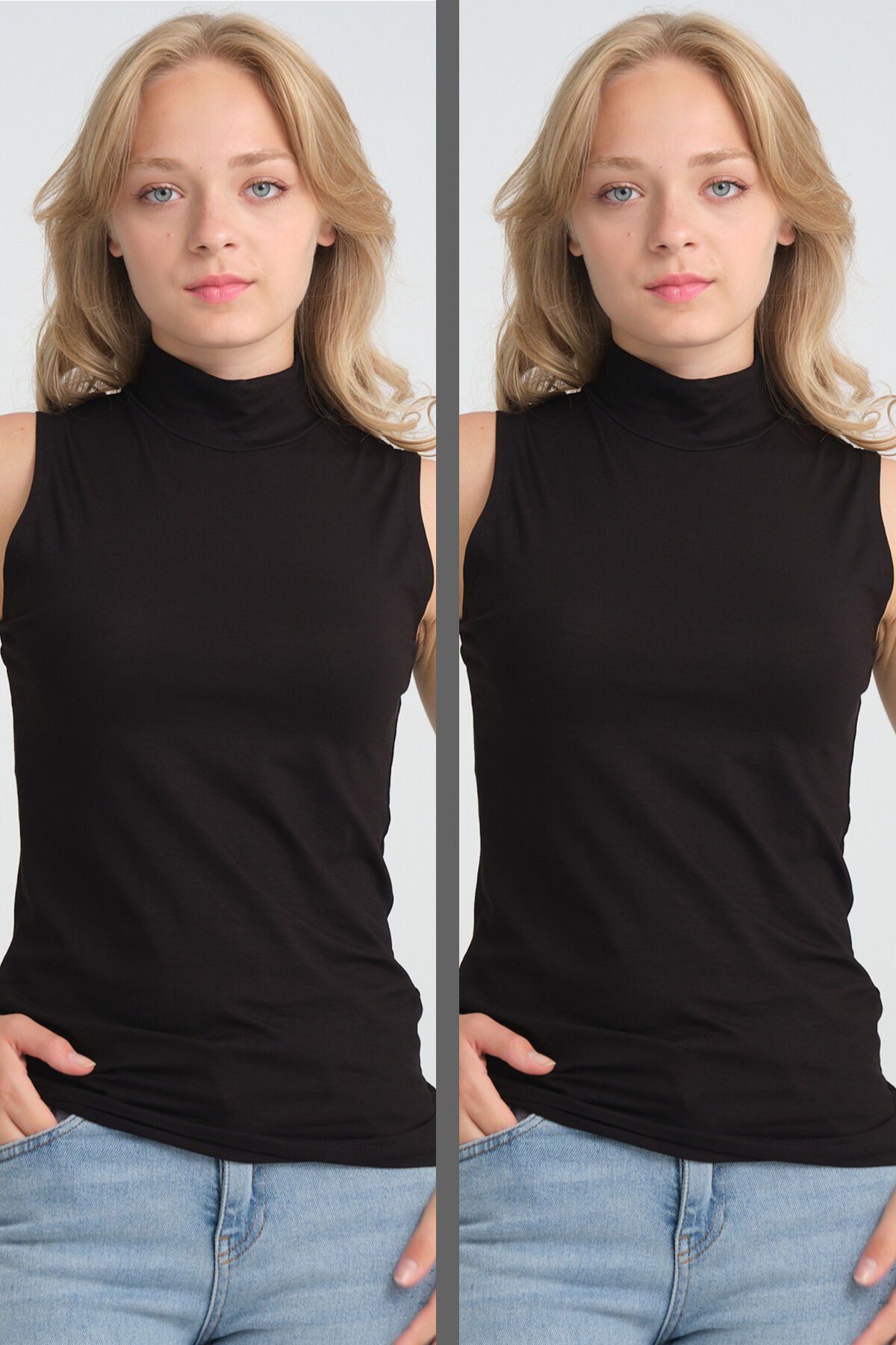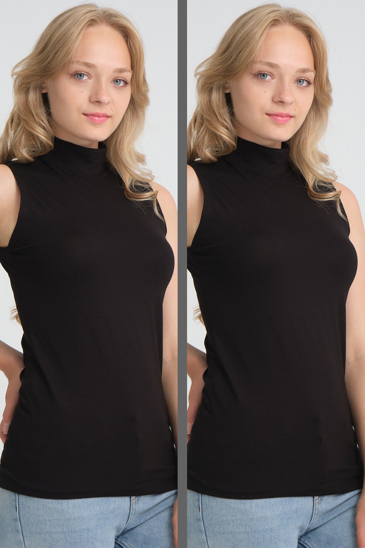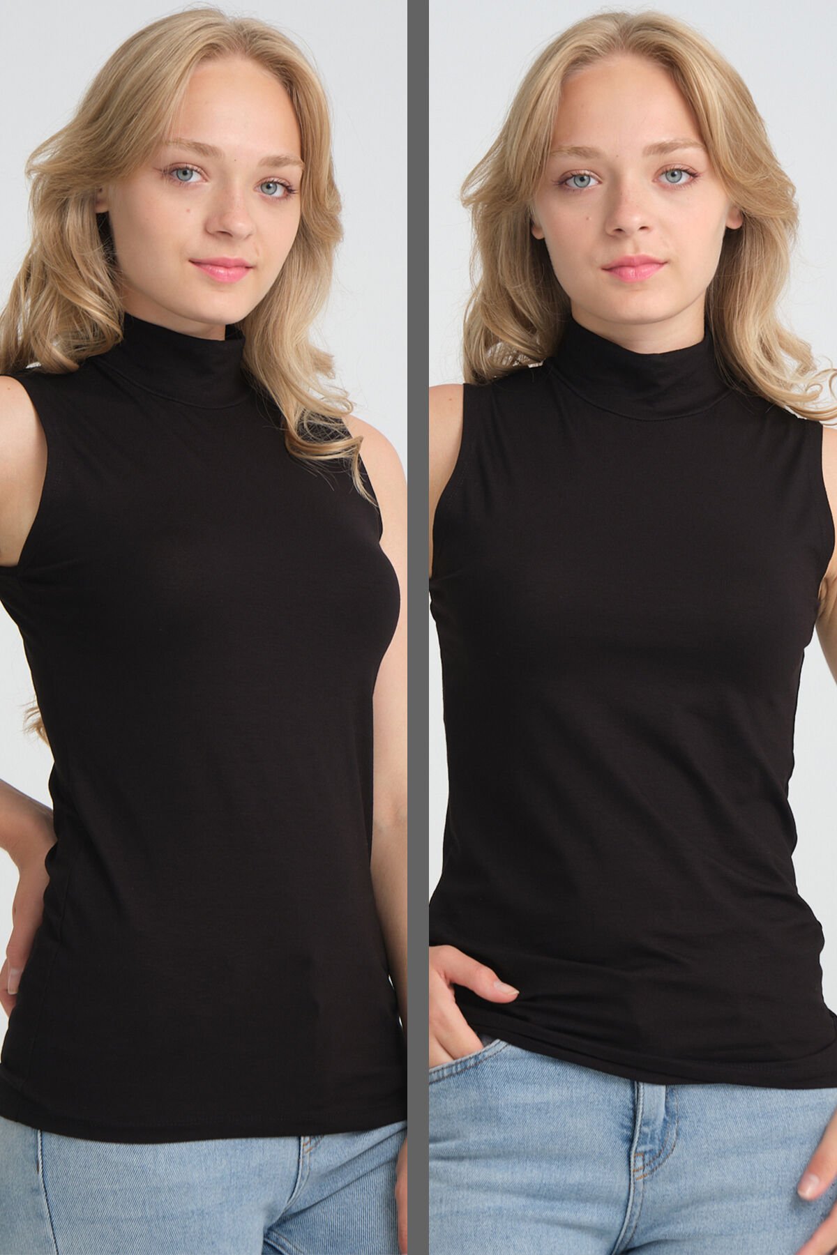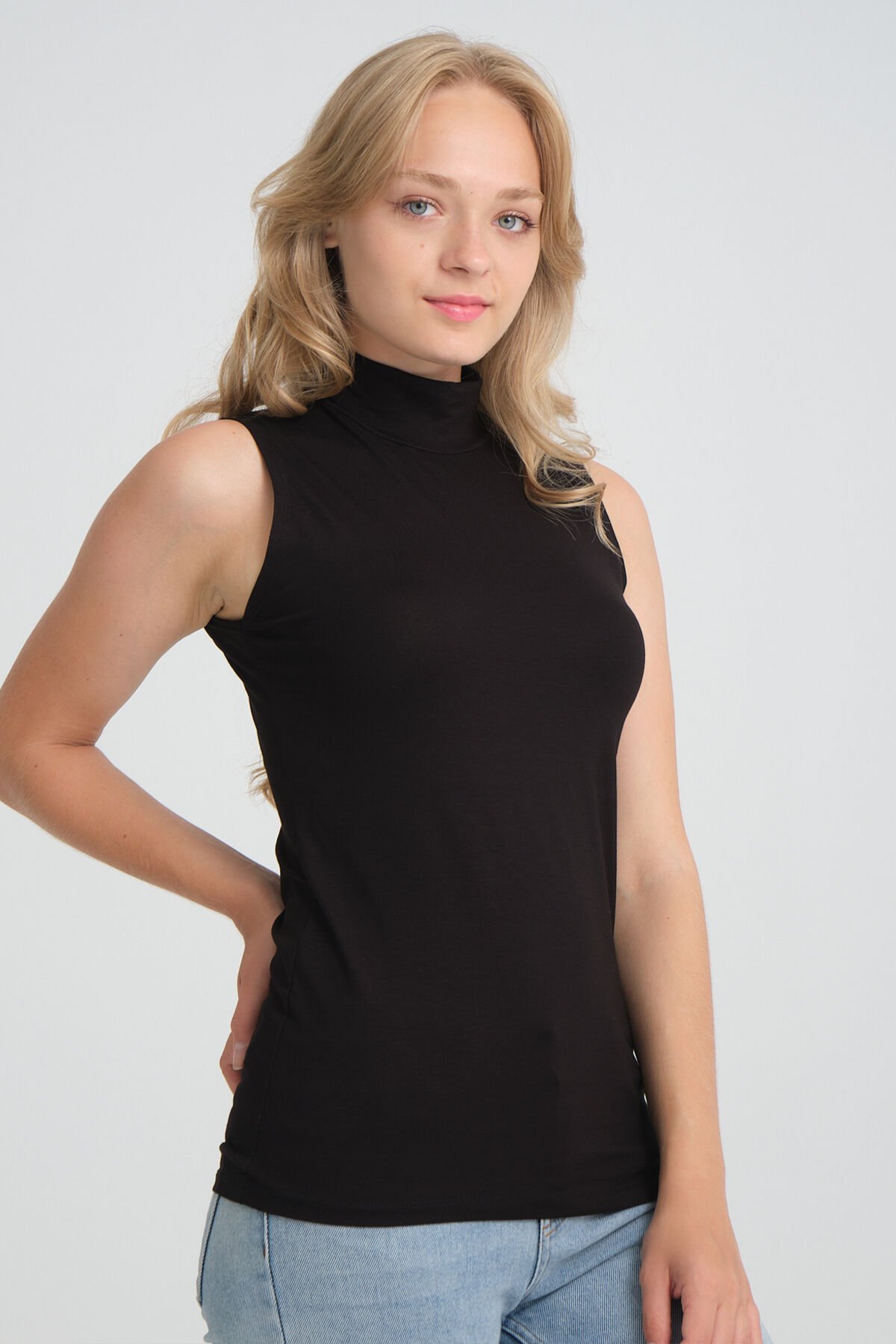 Örme Penye Dik Yaka Kolsuz Kurtarıcı Sıfır Kol Body Tunik M - SİYAH-SİYAH