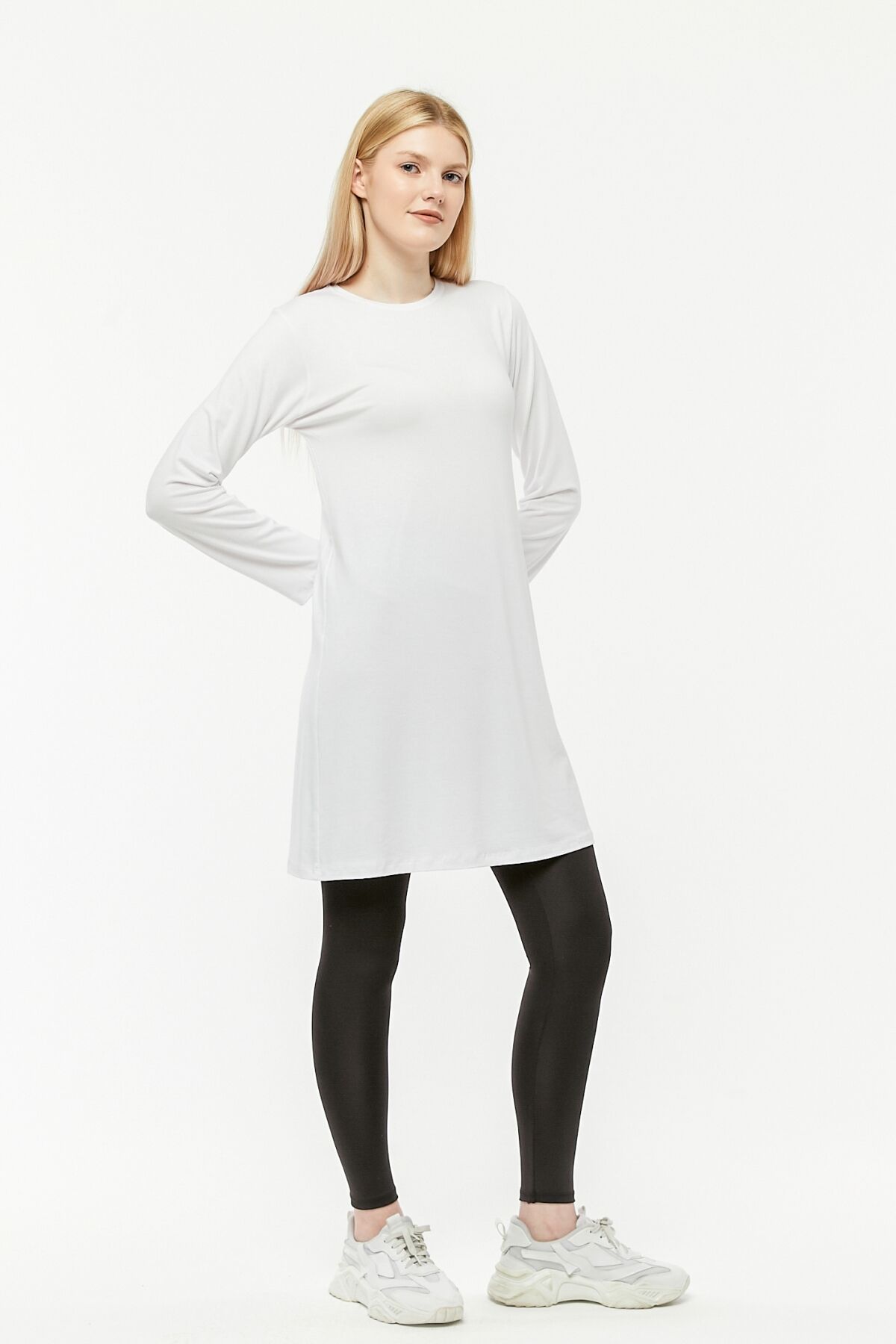 Uzun kollu viskon penye tunik, günlük yaşamın koşuşturmacasında size şıklık ve rahatlık sunan bir parçadır. Kolay kombinlenebilir yapısı ile her kombine kolayca uyum sağlar. Kot pantolon, kumaş pantolon veya etek ile kombinleyebileceğiniz bu tunik, günlük giyim için idealdir.